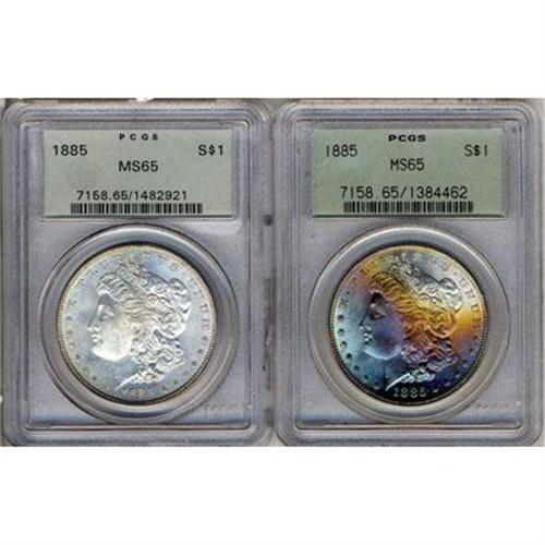 Lot 135 - Lot of Two 1885 Morgan Dollars PCGS MS65