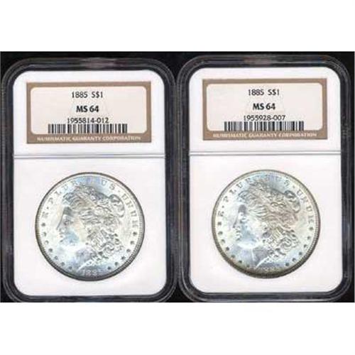 Lot 137 - Lot of Two 1885 Morgan Dollars NGC MS64