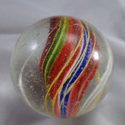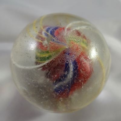 Larger Solid Core Swirl. Nice coloring. Overall rubbing and a couple of tiny flakes. Germany, circa 1860-1920. 1-11/16". Near Mint (8.5).