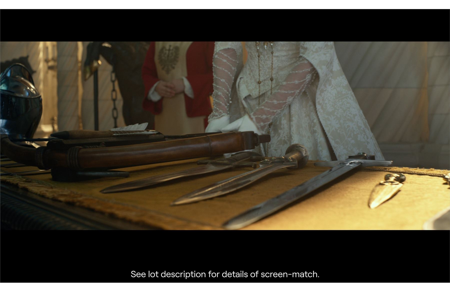 Entry: a written statement in the Auction catalogue identifying the Lot and its Lot number, which may also contain a photograph of the Lot taken by Propstore. Please note however any photographs or stills extracted from a TV or film production that appear in the Auction catalogue are provided for illustrative purposes only and do not form part of the Entry. They are not a confirmation that the Lot appeared within the scene portrayed in the relevant photograph or still. Any specific on-camera usage of the Lot known to Propstore will be noted within the Entry.