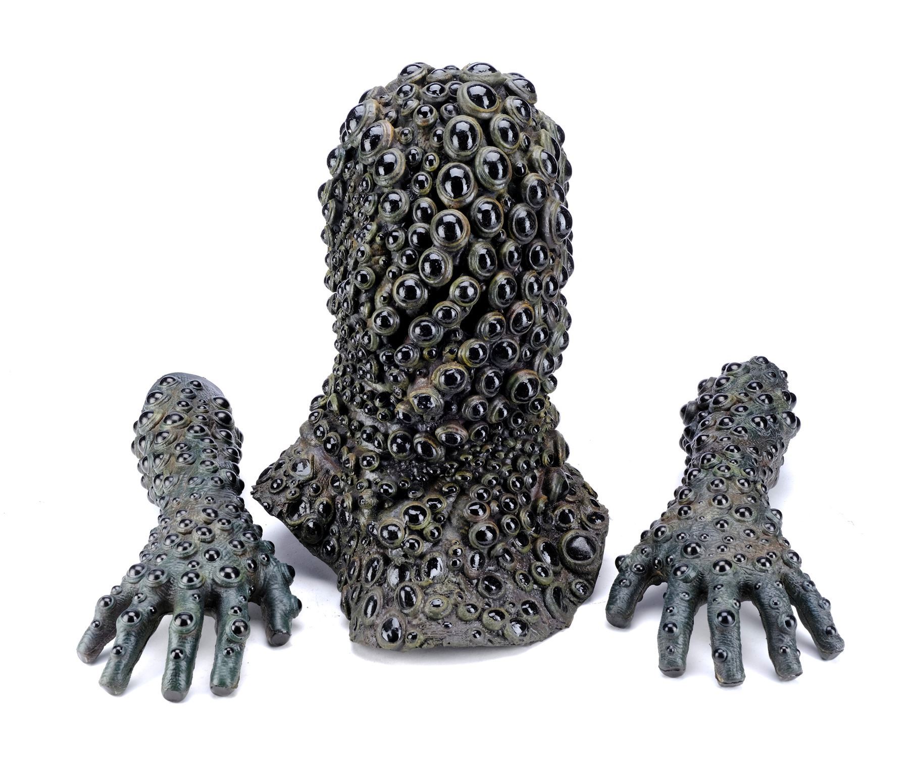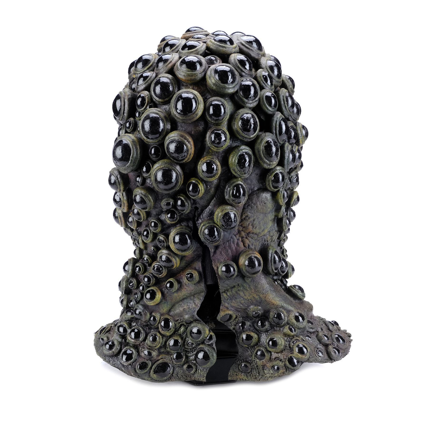 This lot consists of one dark gray painted rubber mask and two rubber foam arms that feature numerous sculpted eyes painted a glossy black. This lot exhibits rough seams and very minor holes on the mask. Dimensions (mask): 18" x 10" x 8" (45.75 cm x 25.5 cm x 20.5 cm); (arms): 17" x 7" x 4.5" (43.25 cm x 18 cm x 11.5 cm):