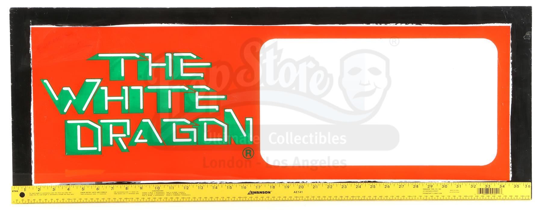 A prototype "White Dragon" sign from the production of Ridley Scott's sci-fi classic Blade Runner. The White Dragon was a Los Angeles noodle bar visited by LAPD blade runner Rick Deckard (Harrison Ford) in the year 2019. Prototypes for the noodle bar's sign were made in pre-production while deciding on the final look for the setting.