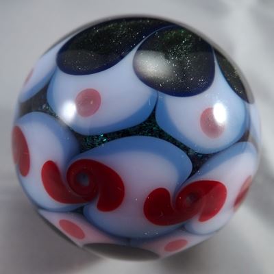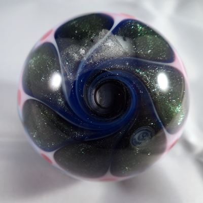 Stunning geometric with lots of aventurine. Signed with a "CS 2004" signature cane. 1-7/8". Mint (9.9).