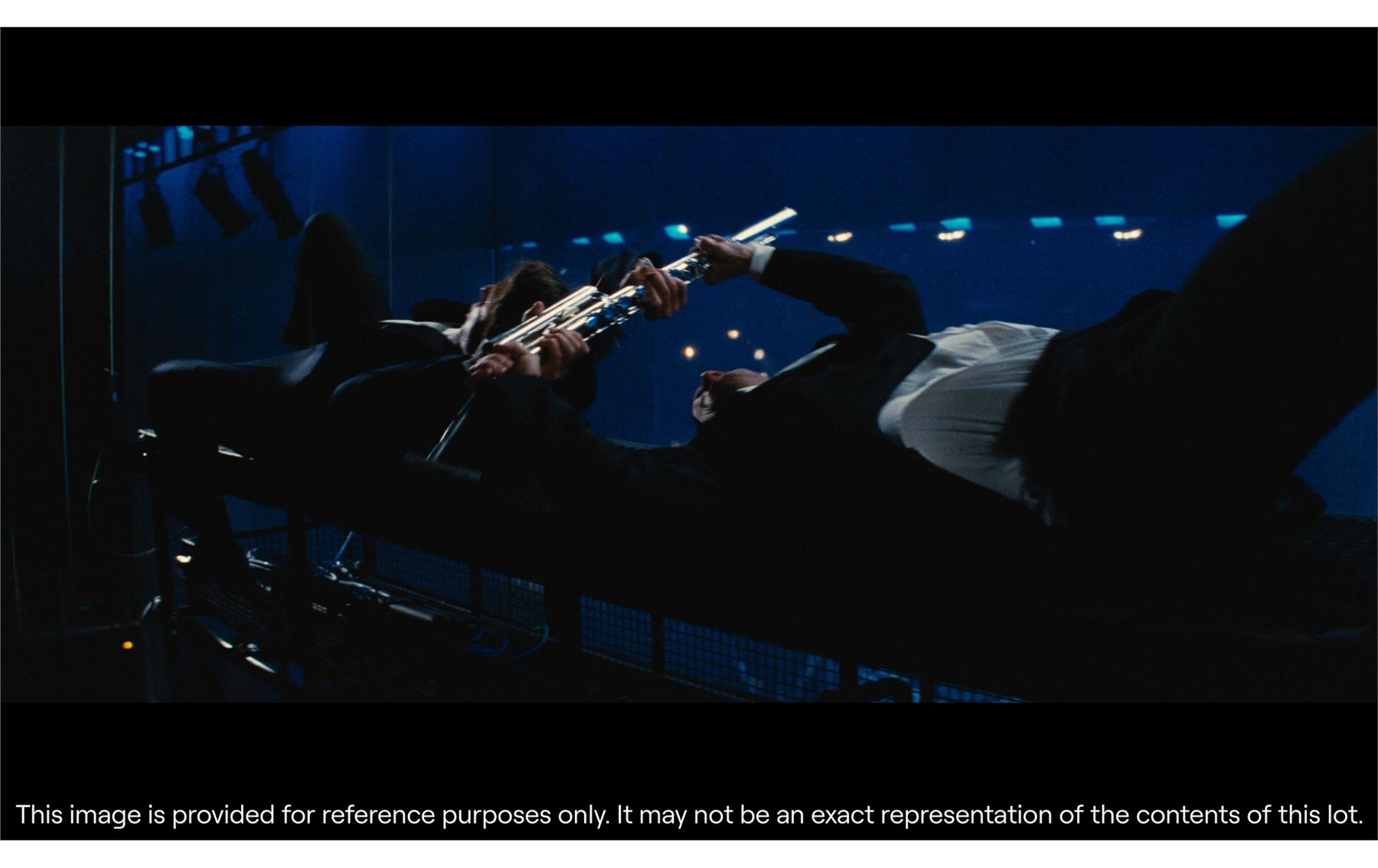 A stunt flute rifle from Christopher McQuarrie's spy sequel Mission: Impossible - Rogue Nation. An assassin (Wolfgang Stegemann), intent on killing the Chancellor of Austria (Rupert Wickham), sneaked his rifle into the Vienna State Theatre, disguising the weapon as a flute. Ethan Hunt (Tom Cruise) then used the rifle to injure the Chancellor, allowing him to escape. The rifle is made predominantly of resin painted and plated silver, with a small foam section on the top and a metal armature. There are chips to the paintwork and some discolouration, as well as a small amount of black spotting along the barrel. Dimensions: 112 cm x 4 cm x 16 cm (44" x 1 1/2" x 6 1/4")