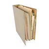 A black hardback notebook contains costume notes, with references to the film's costume designer Julie Harris. Included are descriptions of assorted outfits, swatches, pricing, and the measurements of certain cast members.