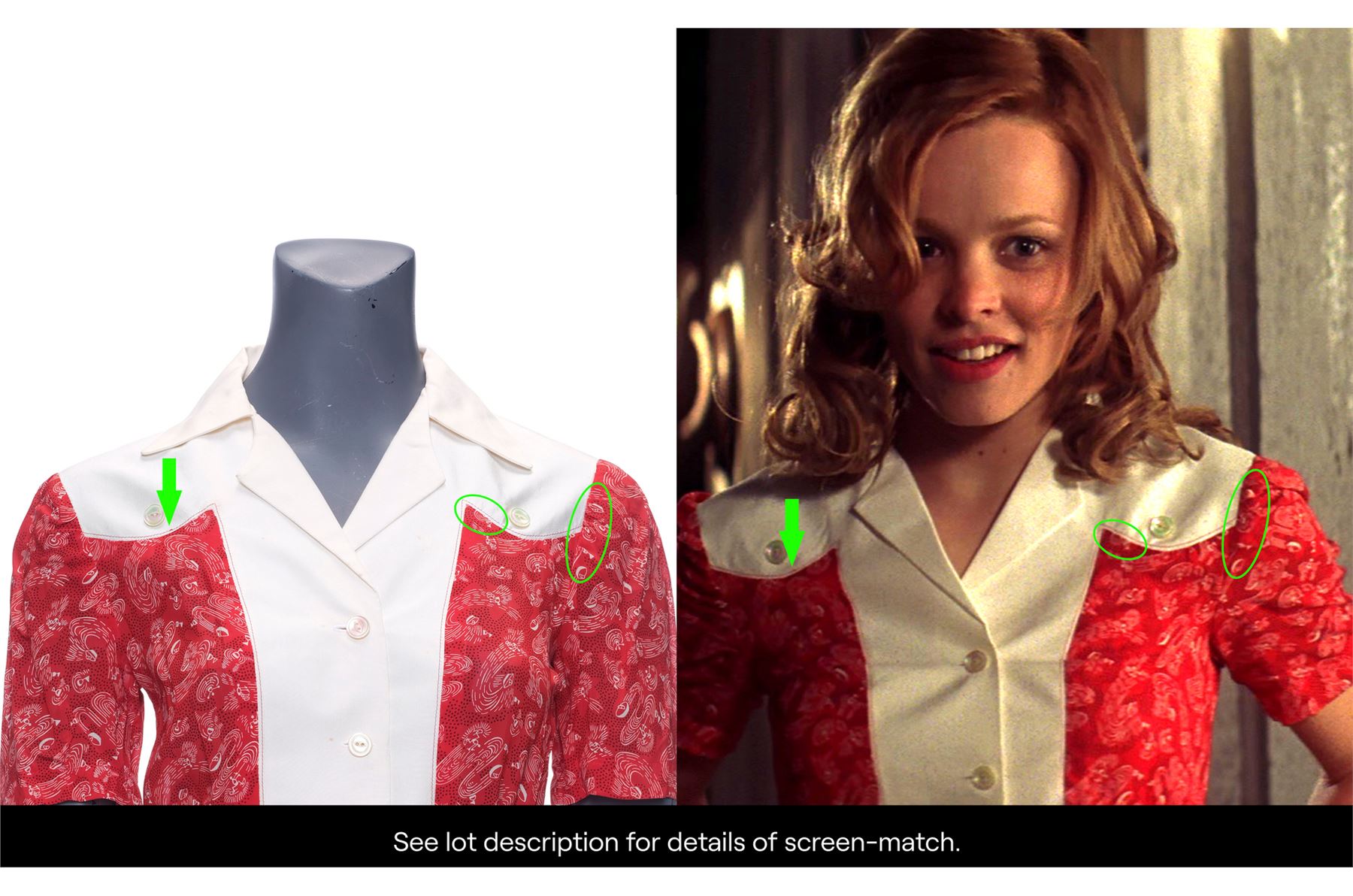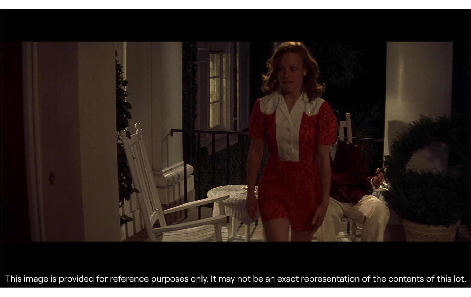 Allie Hamilton's (Rachel McAdams) screen-matched romper from Nick Cassavetes' The Notebook. The layout of the romper's pattern and folds match to the romper Hamilton wore when she and Noah (Ryan Gosling) started dating and were caught by her father, John (David Thornton).