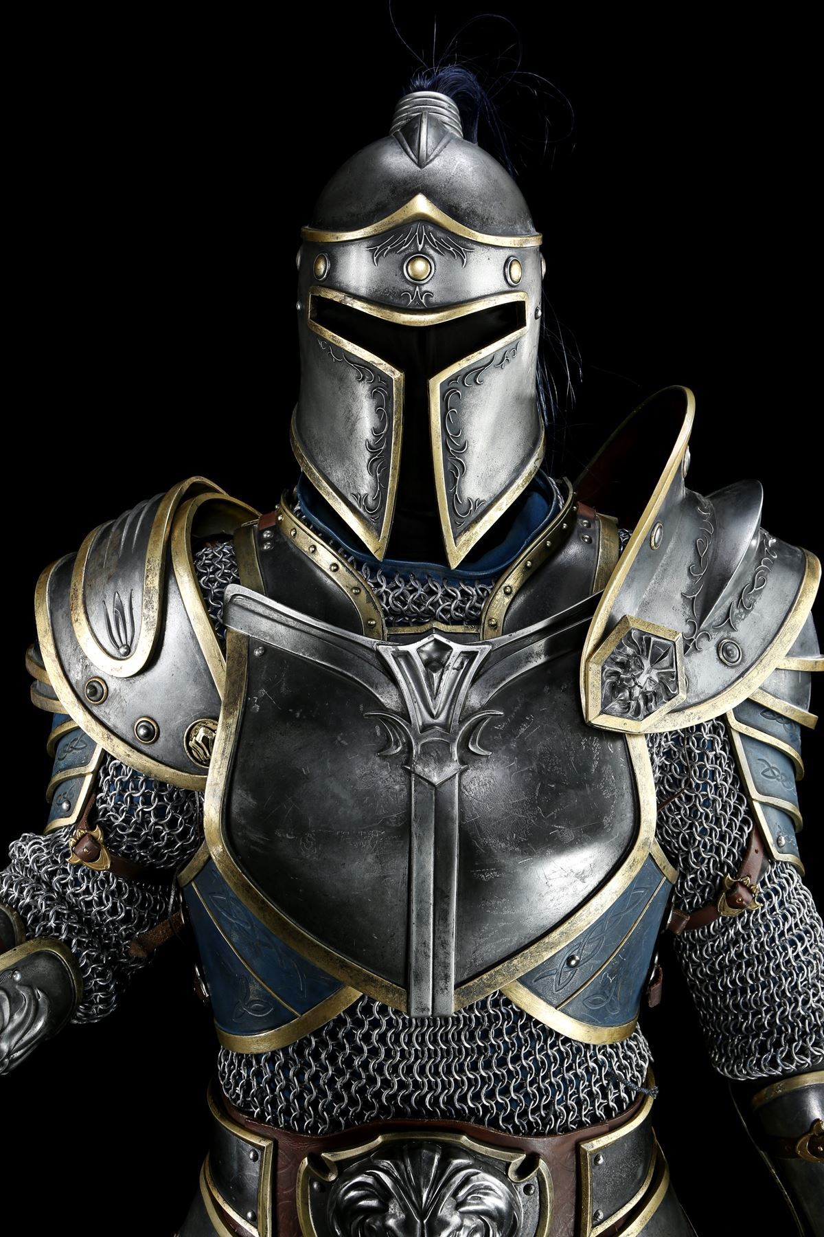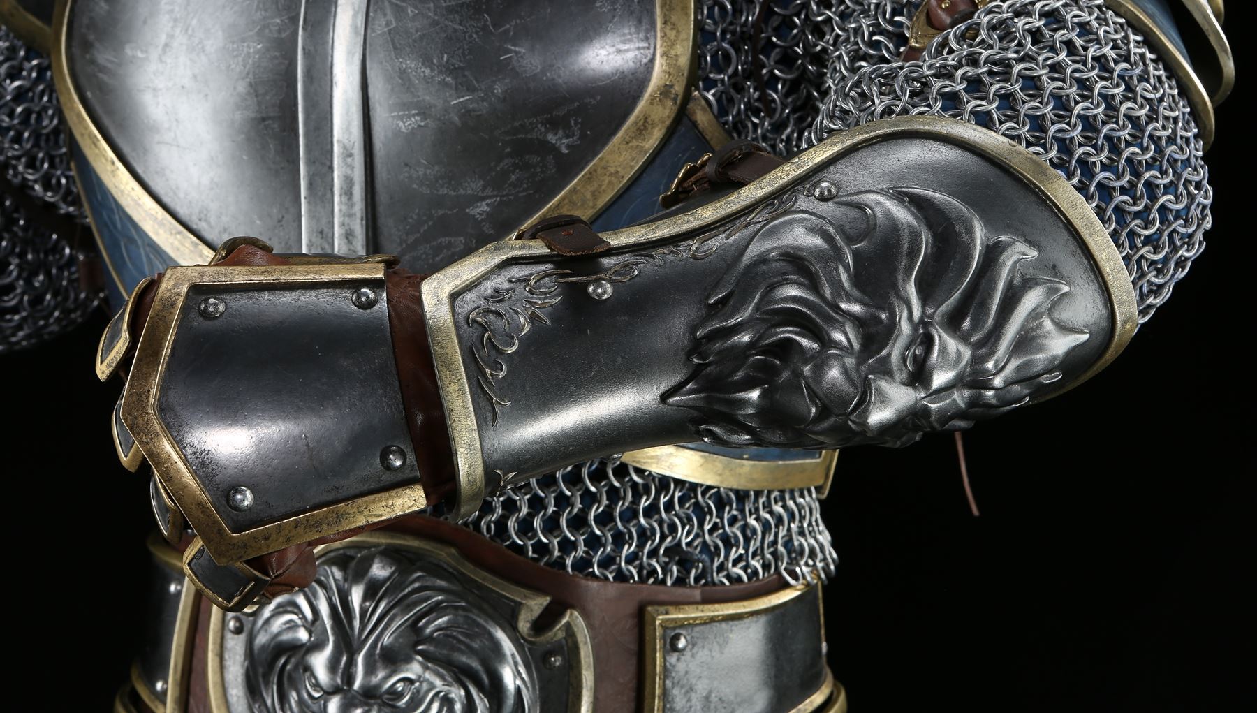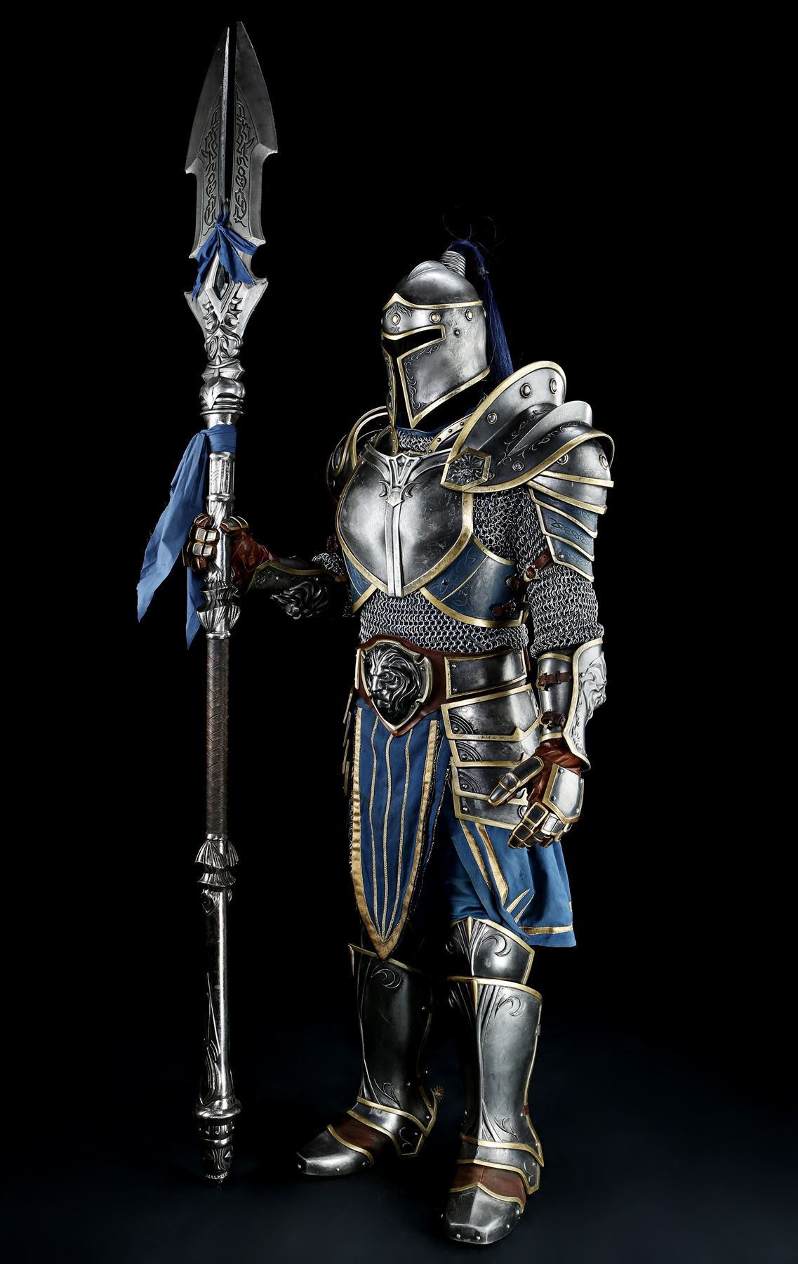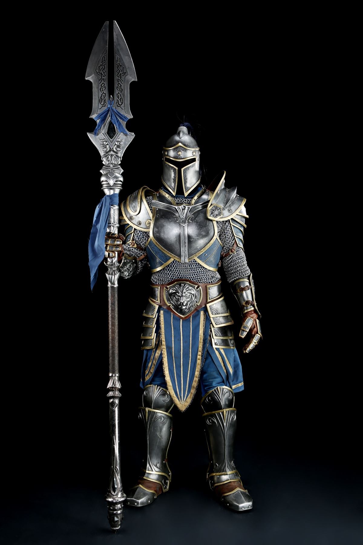 WARCRAFT (2016) - Alliance Knight Armor with Poleaxe - Alliance knight armor with a poleaxe from Duncan Jones' action-fantasy film Warcraft. Alliance Knights wore their armor while in battle throughout the film.