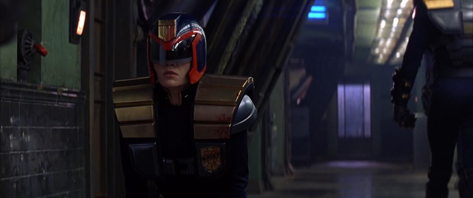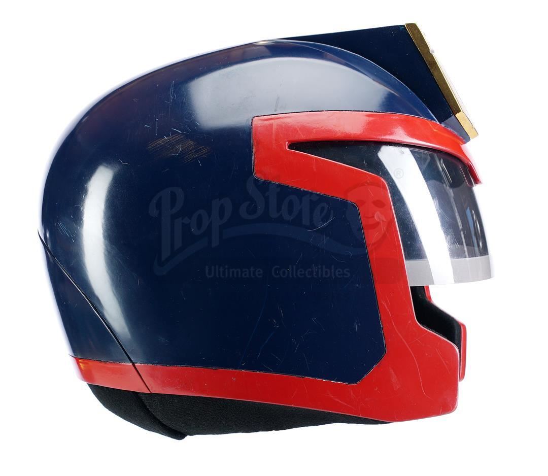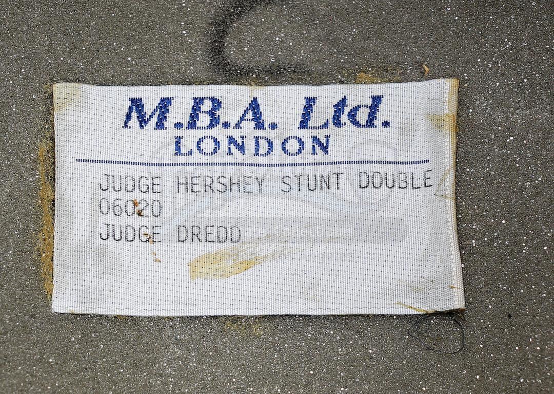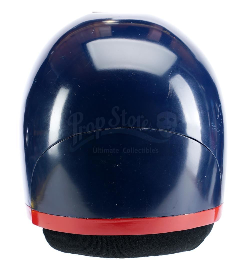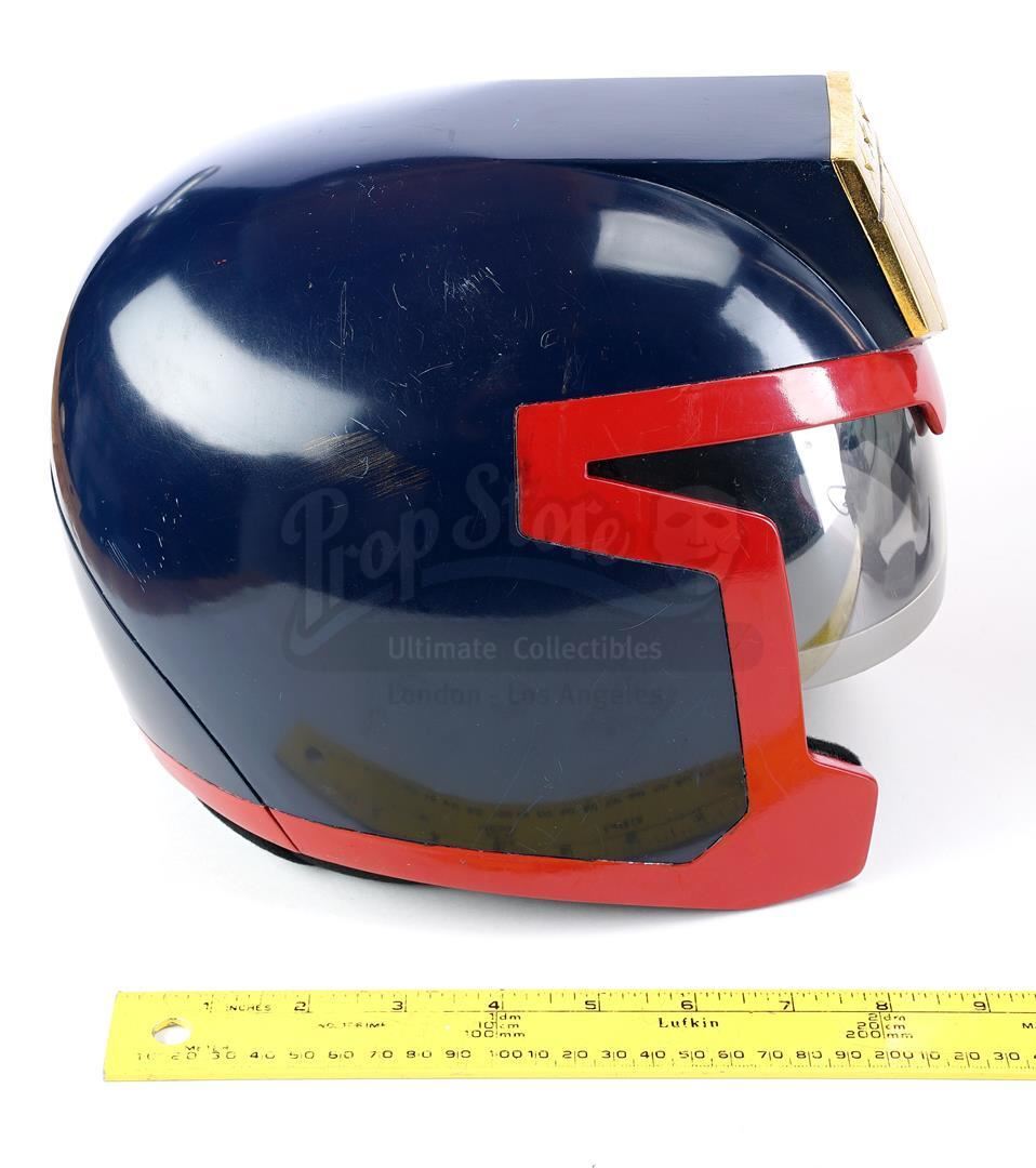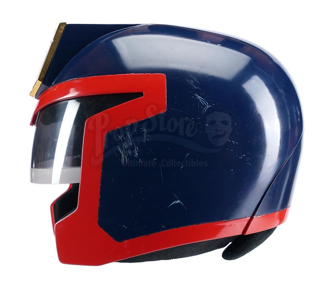This lot will be auctioned on Tuesday, June 29th. The auction will begin at 9:00am PDT and lots are sold sequentially via live auctioneer; tune in to the live streaming broadcast on auction day to follow the pace. Note other lots in the auction may close on June 30th or July 1st. A Judge Hershey stunt helmet from Danny Cannon's comic book adaptation film Judge Dredd. Hershey (Diane Lane) wore her helmet as a member of an elite group of law enforcers known as Judges who operated as the judge, jury, and executioners of potential criminals in Mega-City One. The foam-padded navy, red, and gold-color fiberglass Judge helmet features an MBA Ltd. label marked "Judge Hershey Stunt Double 06020" and a tinted plastic visor. It is in excellent overall condition with minimal wear from production and age, including some scuffing. Dimensions: 12" x 6.5" x 9" (30.5 cm x 16.75 cm x 23 cm) Estimate: $2,000 - 3,000