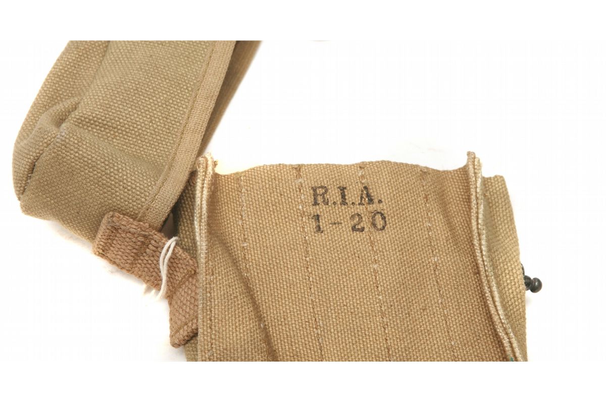 holds 5 magazines for Pedersen Device that converted Model 1903 bolt action rifles into a .30 cal semiauto - marked R.I.A (Rock Island Arsenal) 1-20 (Jan. 1920) - khaki canvas hinged lid pouch with belt hanger - very good condition - non-ffl - 25JJKTN109