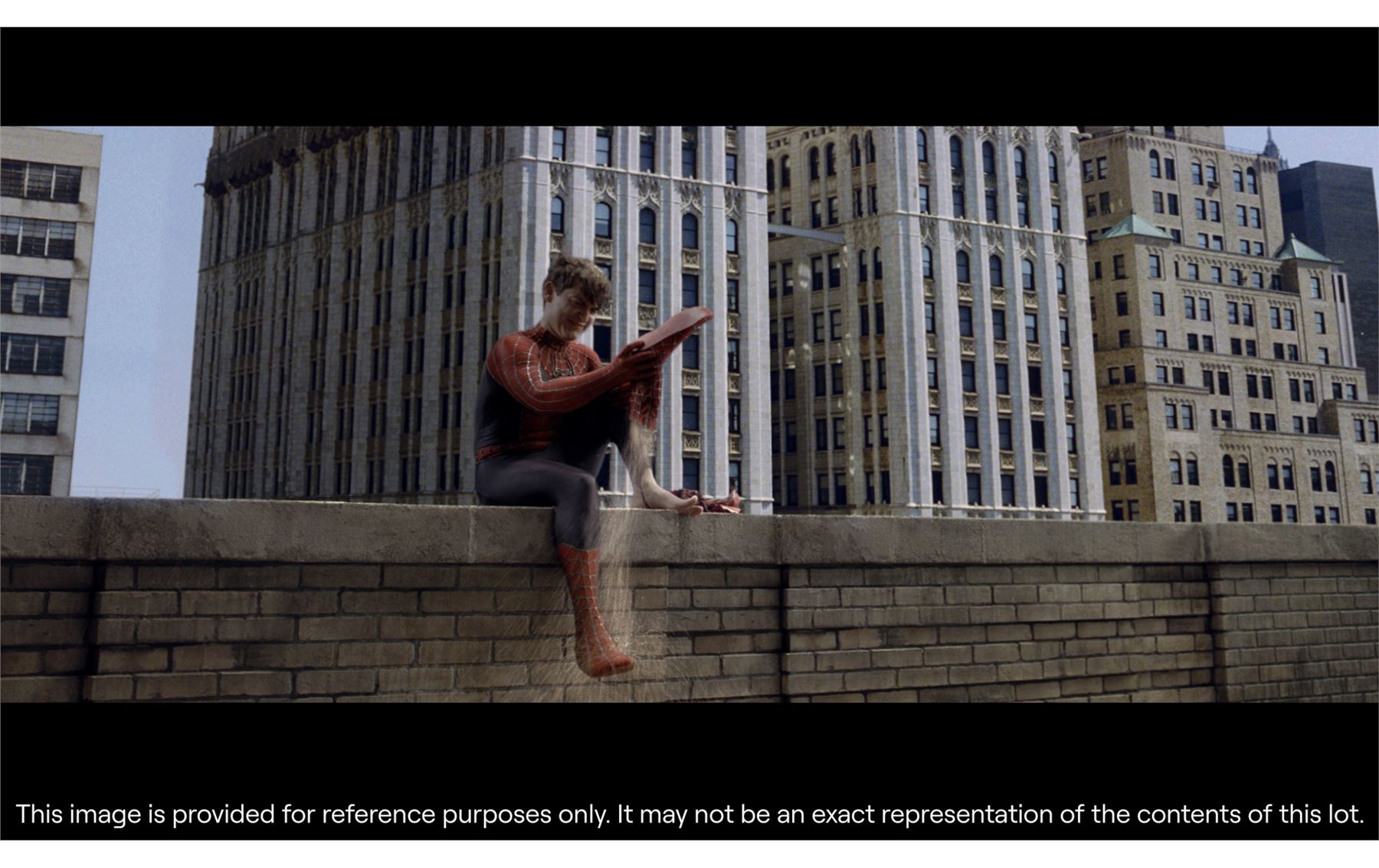 Spider-Man's (Tobey Maguire) left boot from Sam Raimi's Spider-Man 3. Spider-Man wore red boots with a spiderweb pattern as part of his vigilante superhero costume throughout the film,