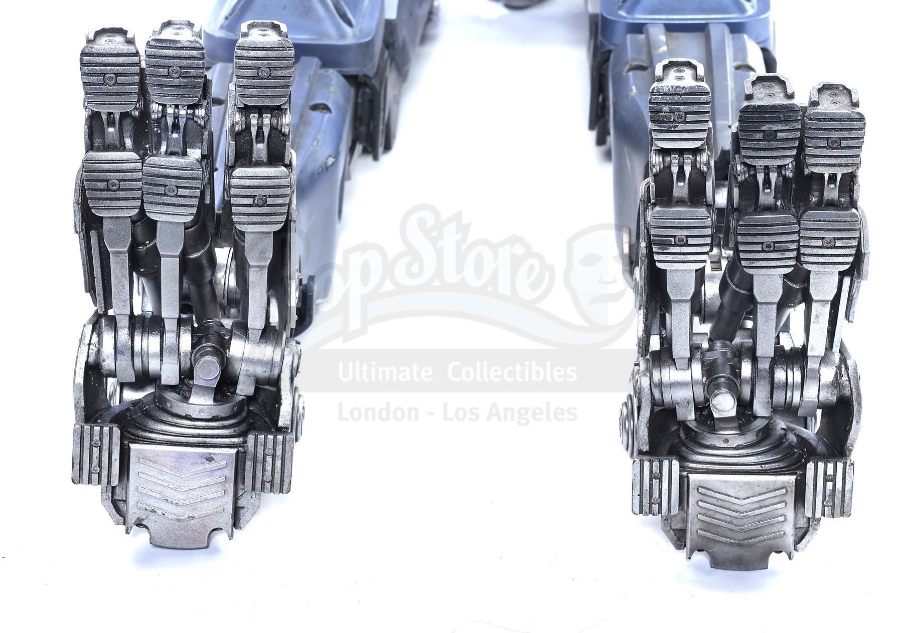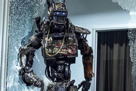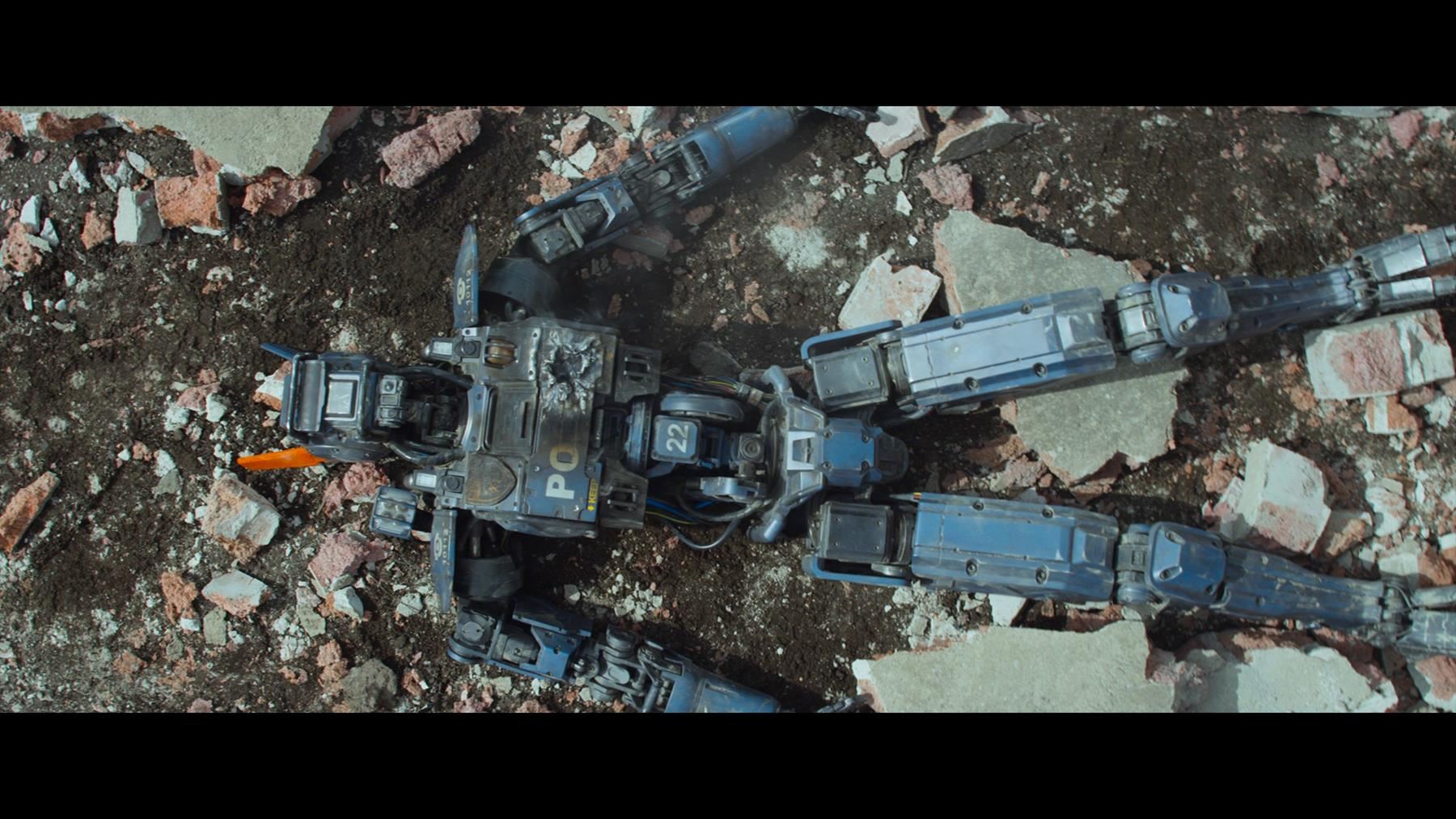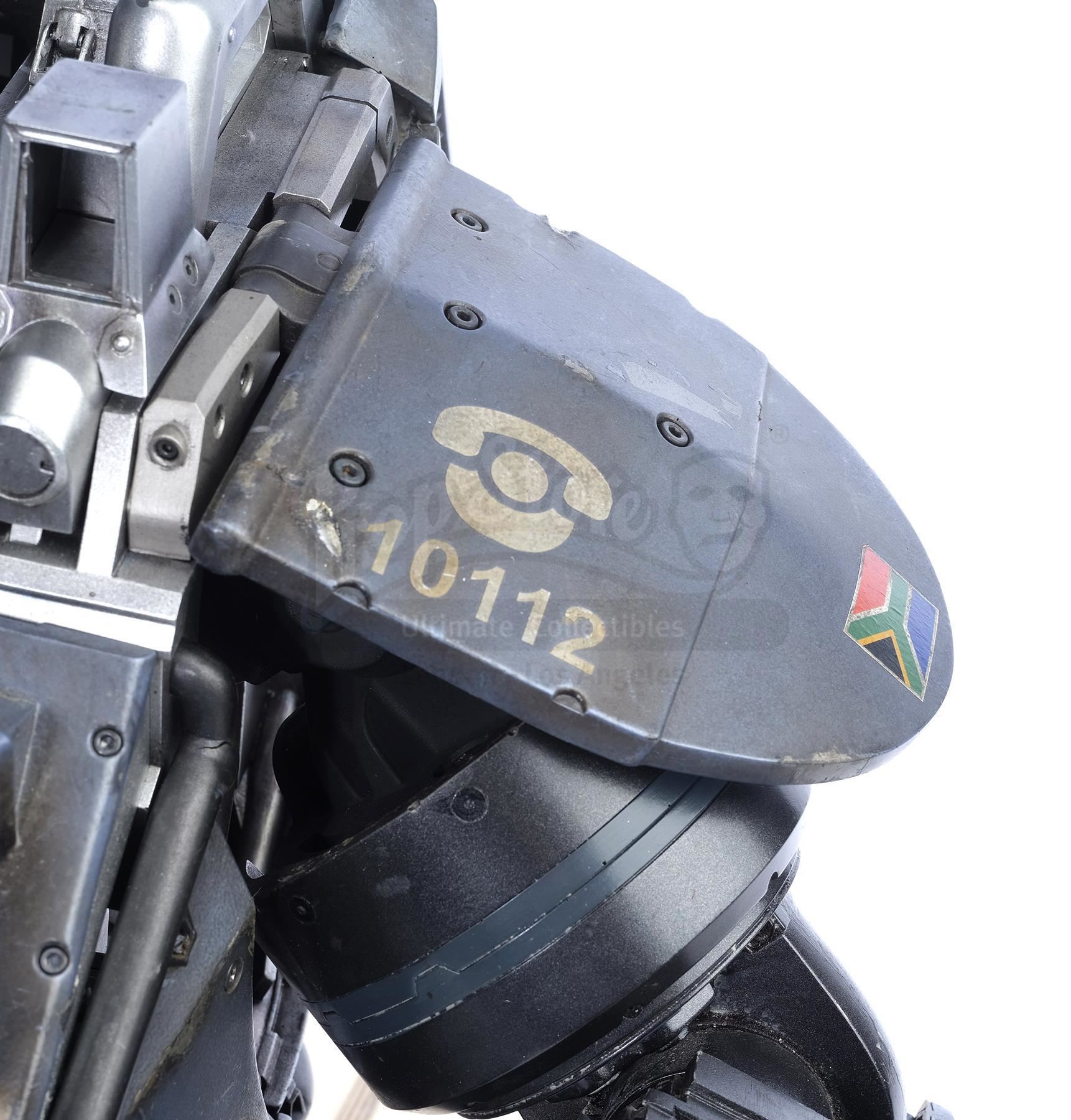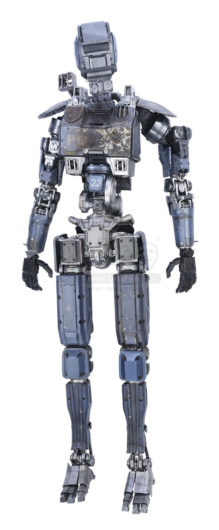 A full-size "CHAPPiE" title character robot with replica head from Neill Blomkamp's dystopian sci-fi film Chappie. Damaged, human-like law enforcement robot CHAPPiE (Sharlto Copley) fell into the hands of a group of gangsters. The film featured a number of Tetravaal police scout robots and title character CHAPPiE had the unique designation number "22".
