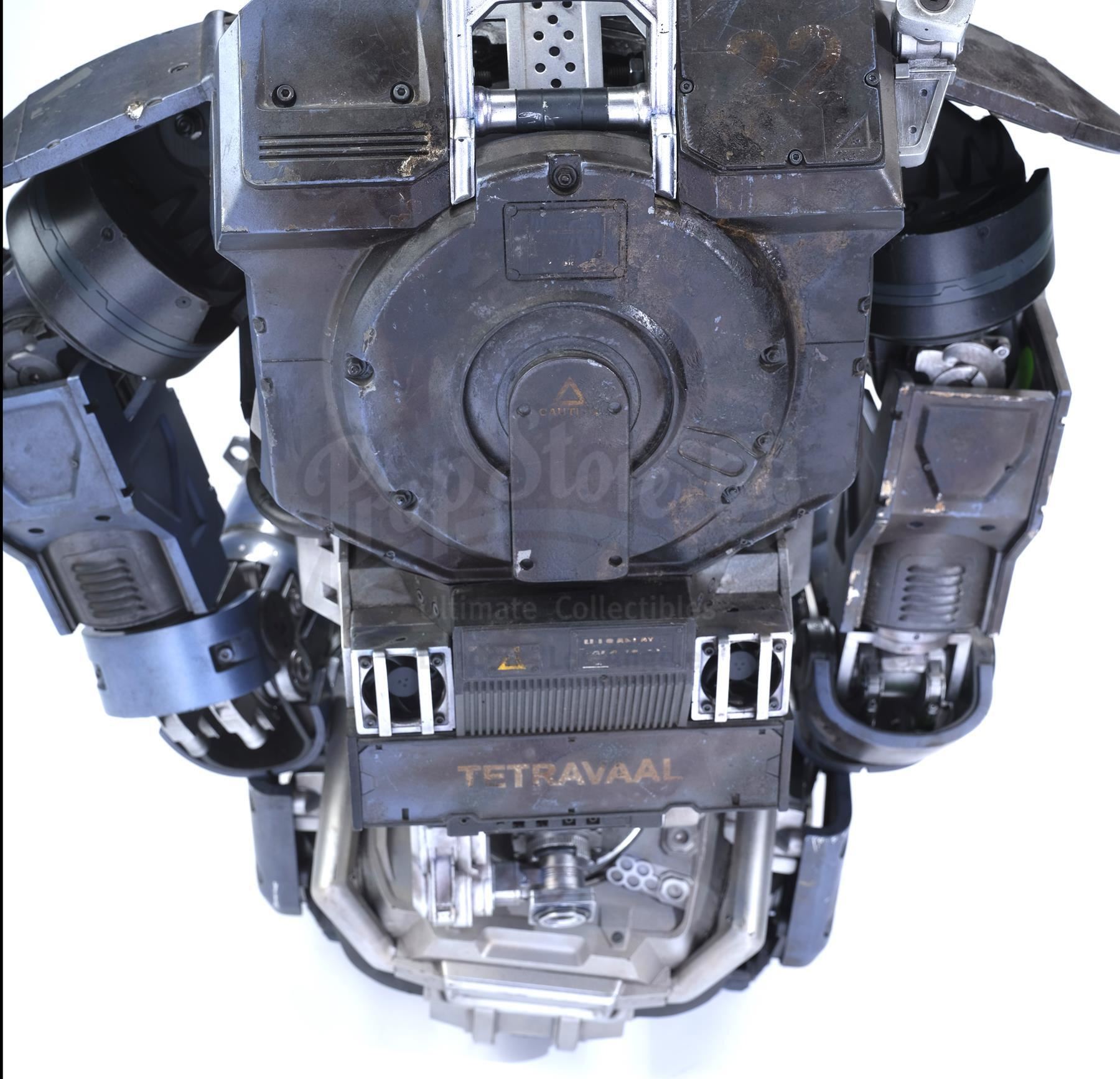 CHAPPiE was designed and created by WETA Workshop for the film and features a huge number of designed components. This highly detailed and impressive robot with its signature blue armor shrouds was assembled from a combination of original CHAPPiE components along with components from a background robot from the assembly factor scenes, and a replica head for display. The chest plate features pyro damage from when CHAPPiE was shot in the chest.