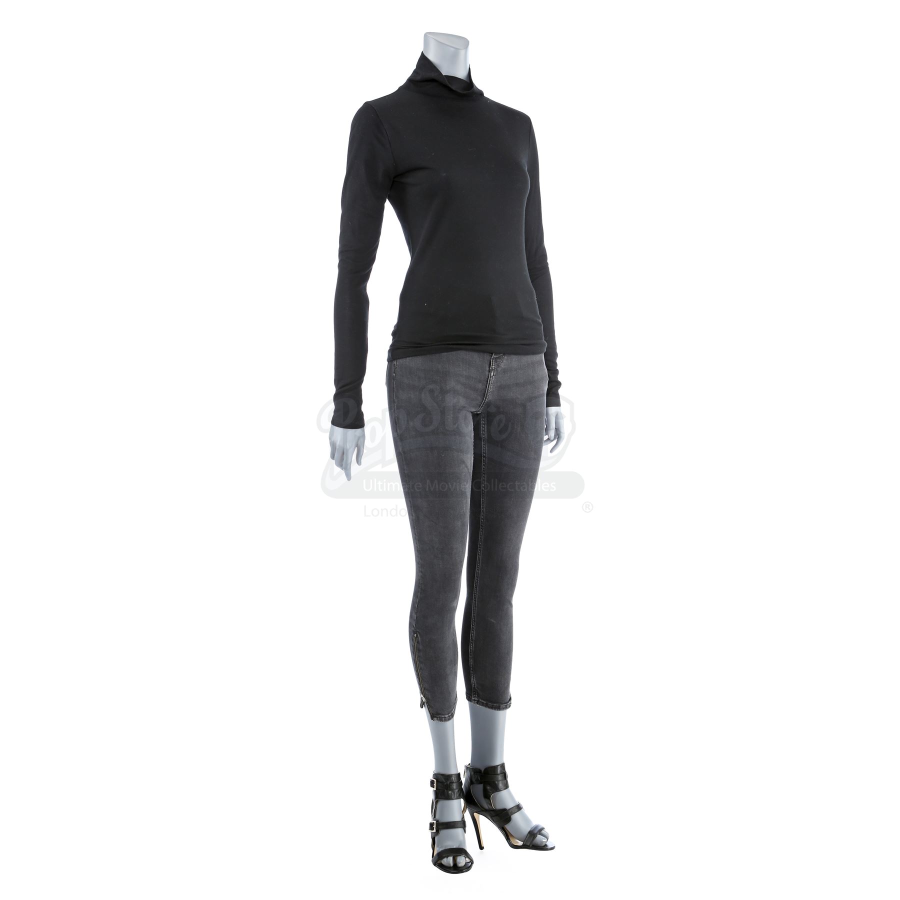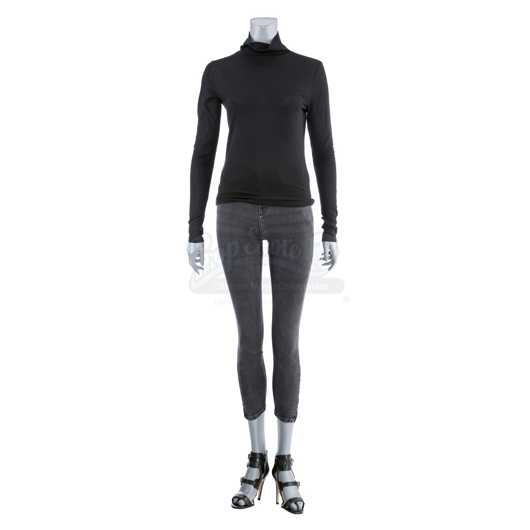 Elektra Natchios' break-in costume from the episode ‘Kinbaku’ (205) of Marvel's Daredevil. In the episode, Natchios wears her costume as she and Matt Murdock break into Roscoe Sweeney’s house. This lot consists of a black cotton blend shirt, charcoal cotton pants and a pair of black leather and rubber shoes. It is in good overall condition with some signs of wear from production and scuffing on the shoes.