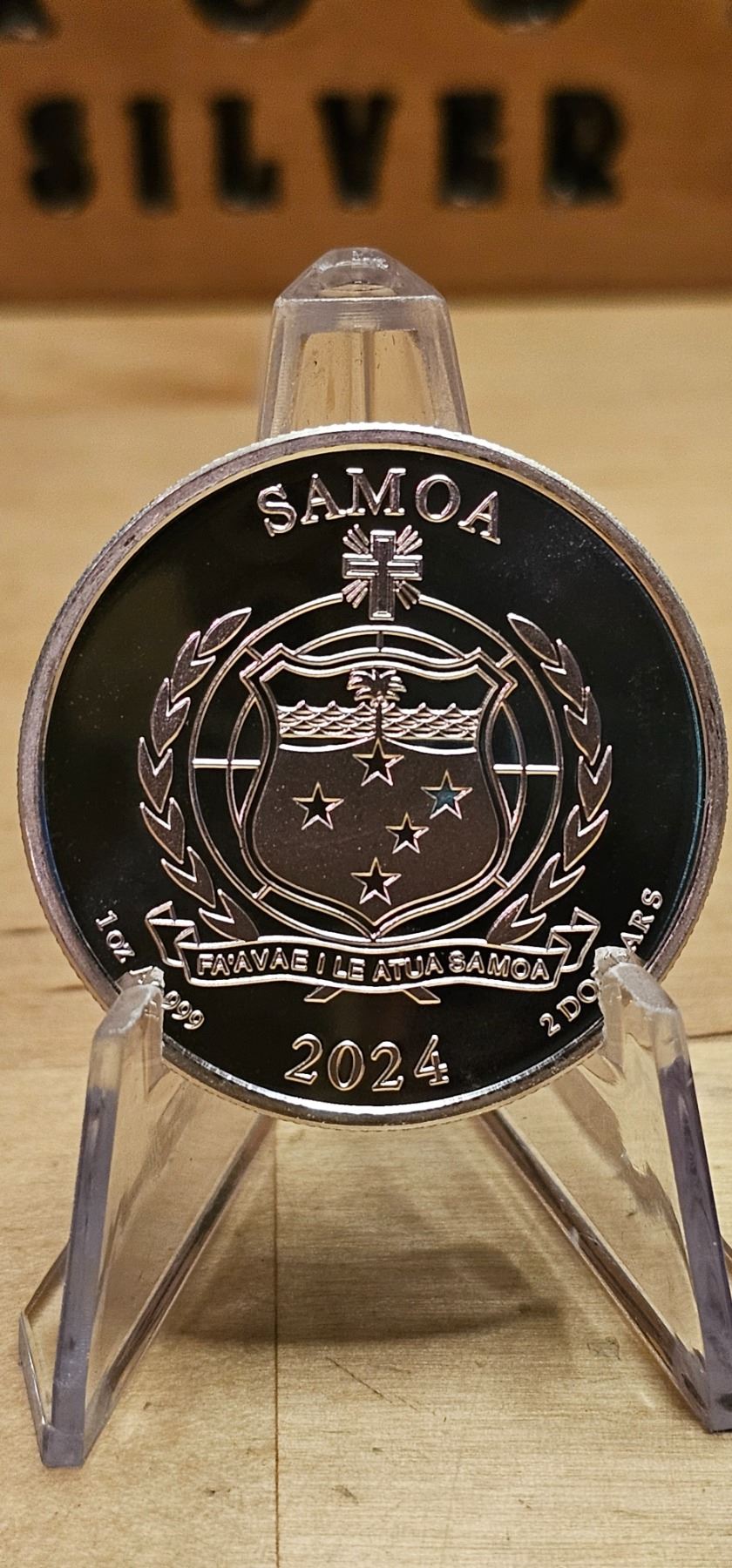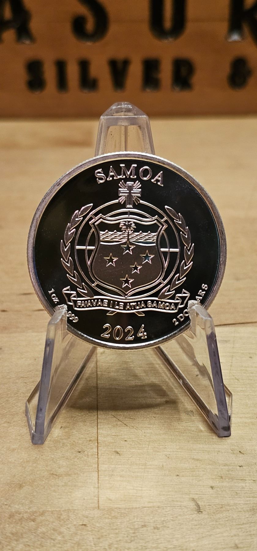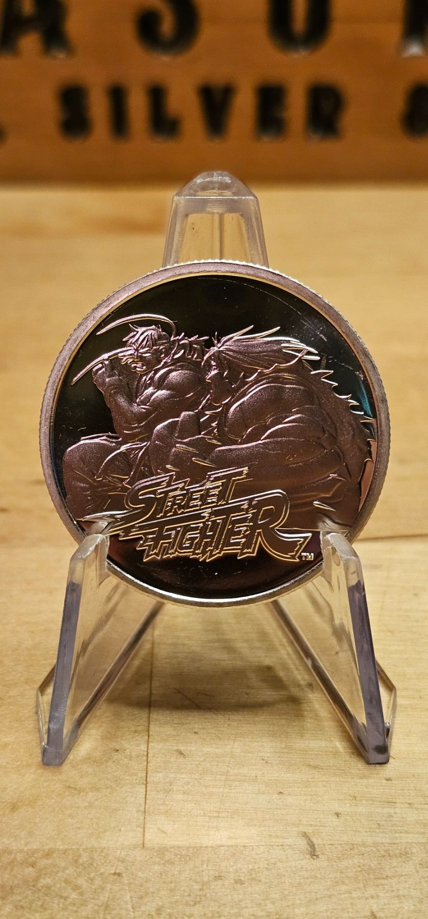 The 1 oz Street Fighter Samoa Silver Coin is a collectible piece struck in .999 fine silver, featuring a design inspired by the iconic Street Fighter video game series. The reverse showcases a detailed image of a popular character from the game, such as Ryu or Chun-Li, highlighting the dynamic action of the franchise. The obverse displays the effigy of Queen Elizabeth II, along with the coin’s denomination and year of issue. This limited-edition coin is a must-have for Street Fighter fans and silver collectors alike.
