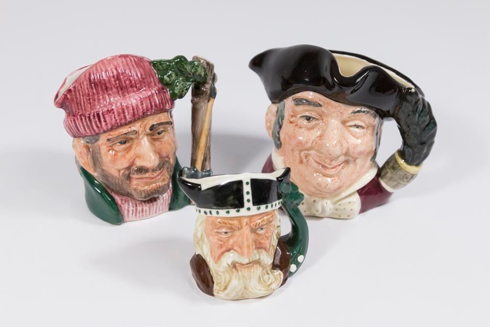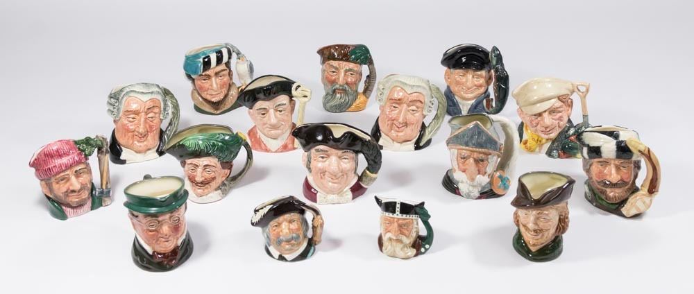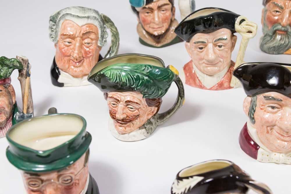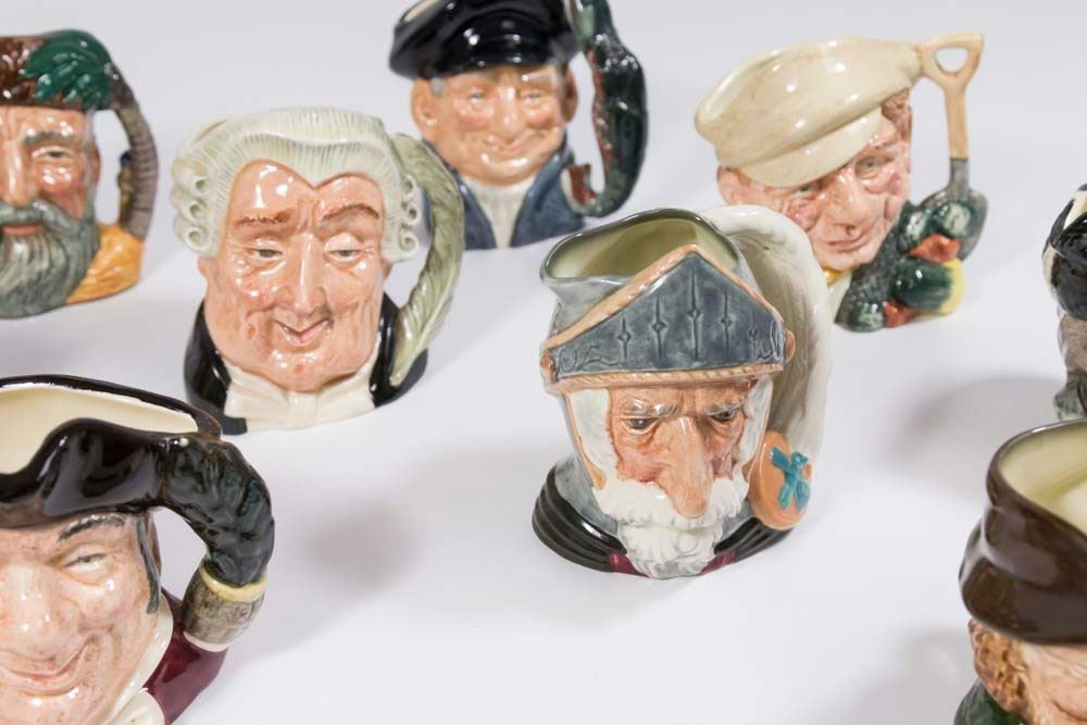 Including 2 mini jugs, Pickwick, Robinson Crusoe D6539, The Trapper D6612, Gaoler 6577, The Lawyer 6504, The Gardener 6634, Lobster Man 6620, Don Quixote 6460, The Falconer 6540, The Lawyer 8035, The Cavalier Mine Host 6470, The Lumberjack 6613, Robin Hood, and 2 miniatures - Viking 6526 & Sancho Panza 6518. From a Florida gentleman's estate collection. Good condition.