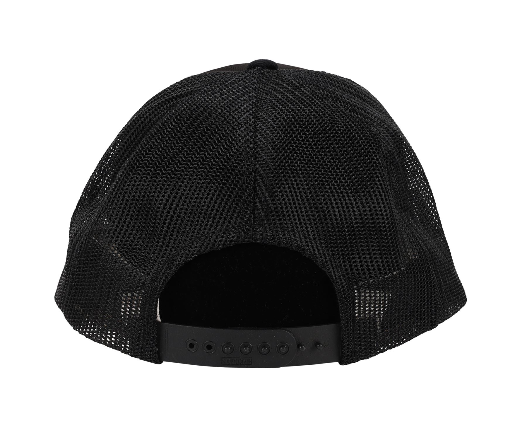 The cap is black with a red lettered patch on the crown, and includes an adjustable sizing band.
