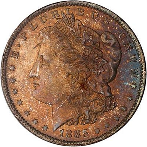 1885-O Morgan Dollar. Frosted glass luster and impressive well toned fields. (#7162)