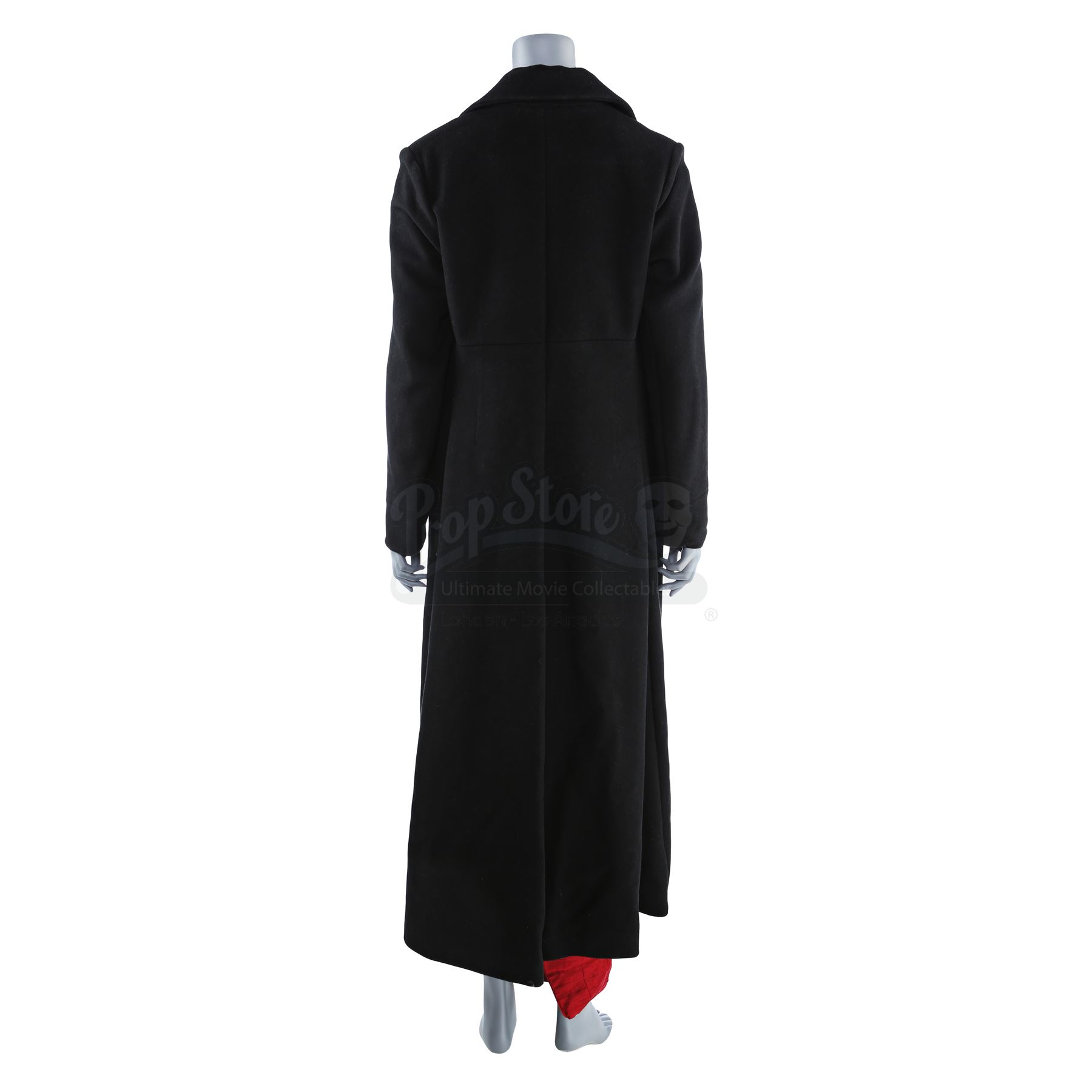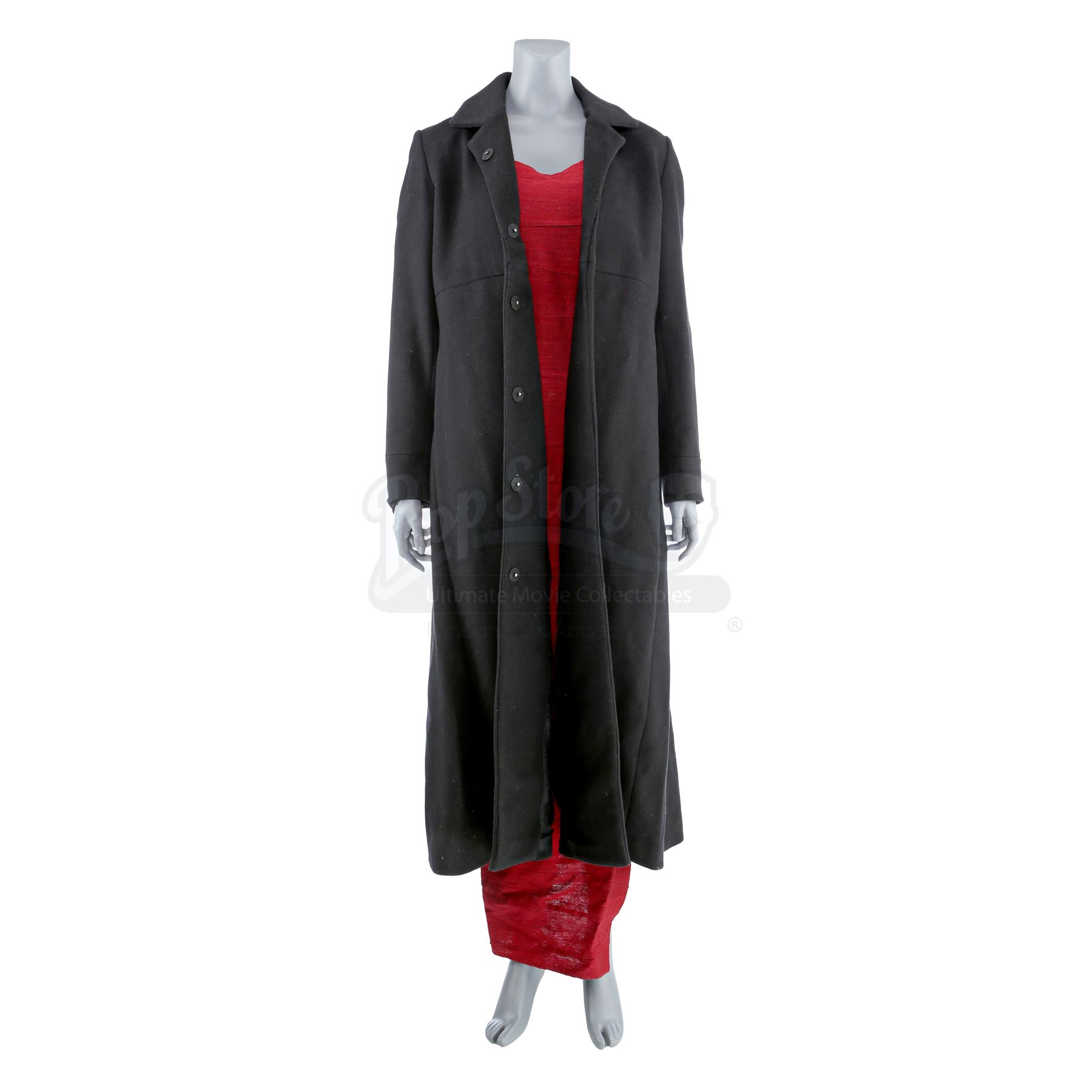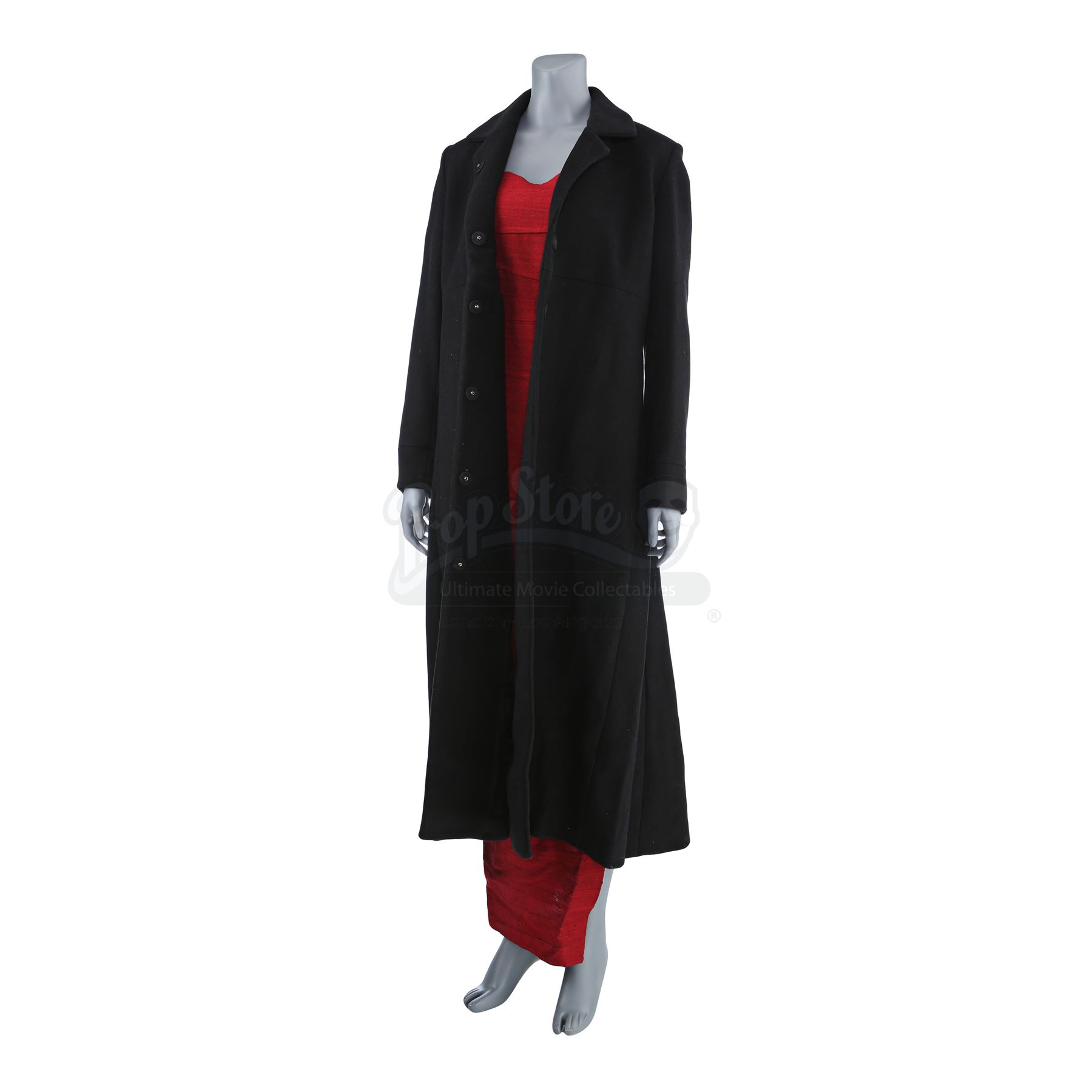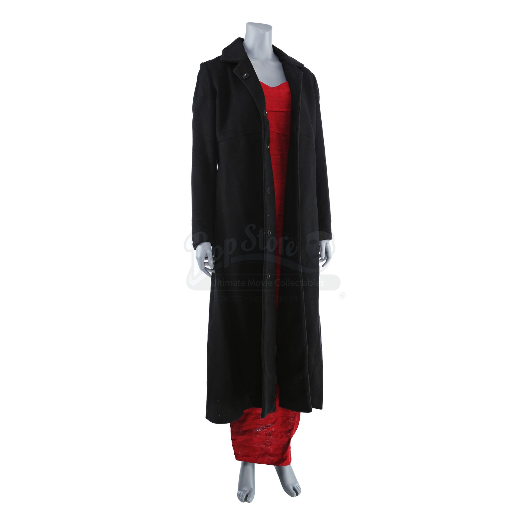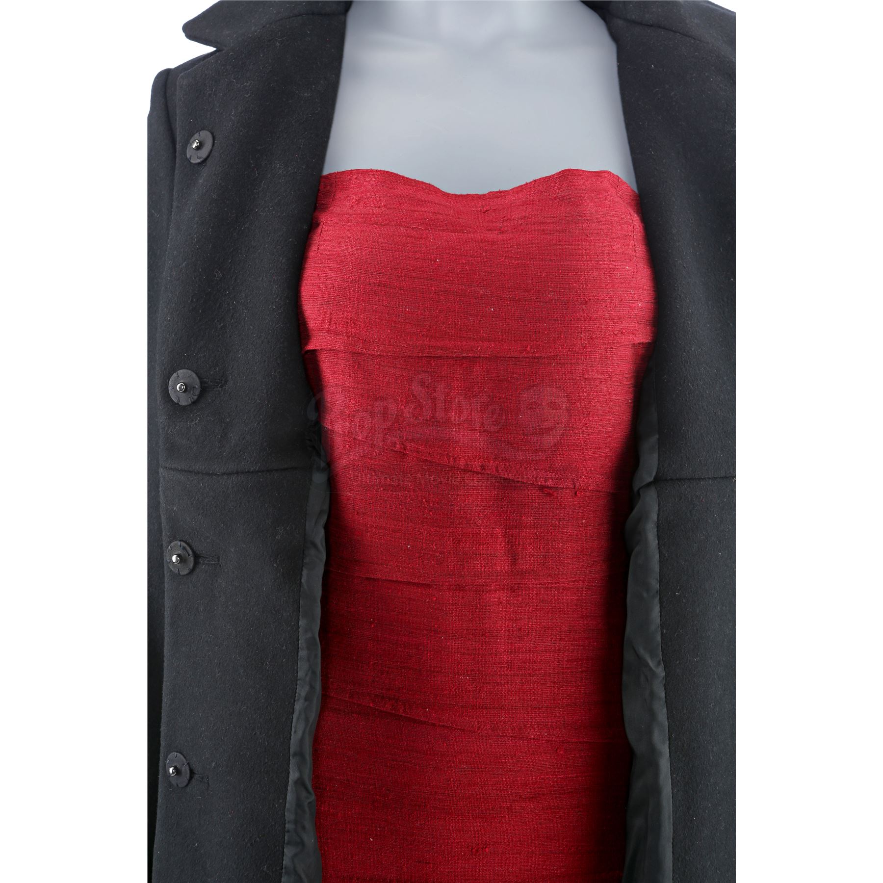 Elektra Natchios' Roxxon Gala costume from the episode ‘Regrets Only’ (206) of Marvel's Daredevil. In the episode, Natchios wears her costume to a gala she attends with Matt Murdock while investigating the Yakuza’s infiltration of Roxxon. This lot consists of a black wool button-up overcoat with an acetate lining and a red polyester zip-up dress. It is in excellent overall condition with minor signs of wear to the wool from production.