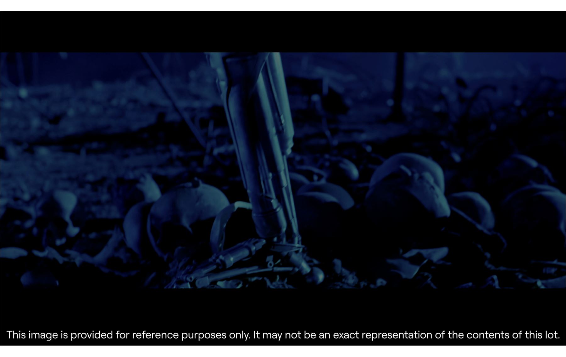11.2. In the catalogue Entry, Propstore takes steps to identify and provide provenance for Lots offered at Auction. In many cases, the Lots offered were used in or in conjunction with motion pictures or other programmes and information is furnished in order to fully identify and describe the Lot offered at Auction, including photographs and illustrations. Propstore in no way claims any connection to or relationship with the producers of the motion picture or other programme. In all cases, the use of the titles or other elements of a motion picture or other programme is for informational purposes only.
