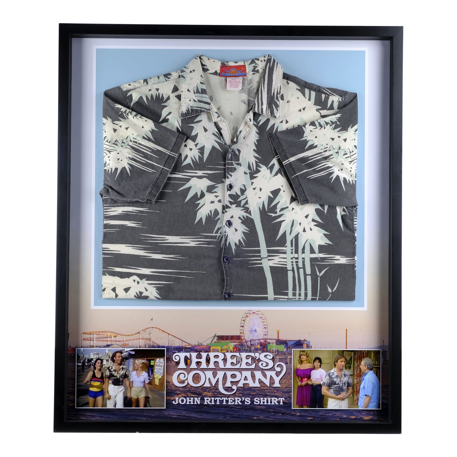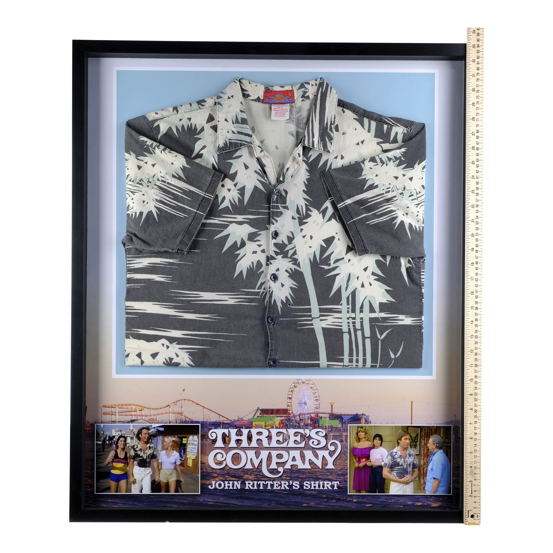 Jack Tripper's (John Ritter) shirt display from the television series Three's Company. Jack wore his shirt as he walked the boardwalk with Janet Wood (Joyce DeWitt) and Chrissy Snow (Suzanne Somers), and when he drove a go-kart in the opening credits of Season 4.