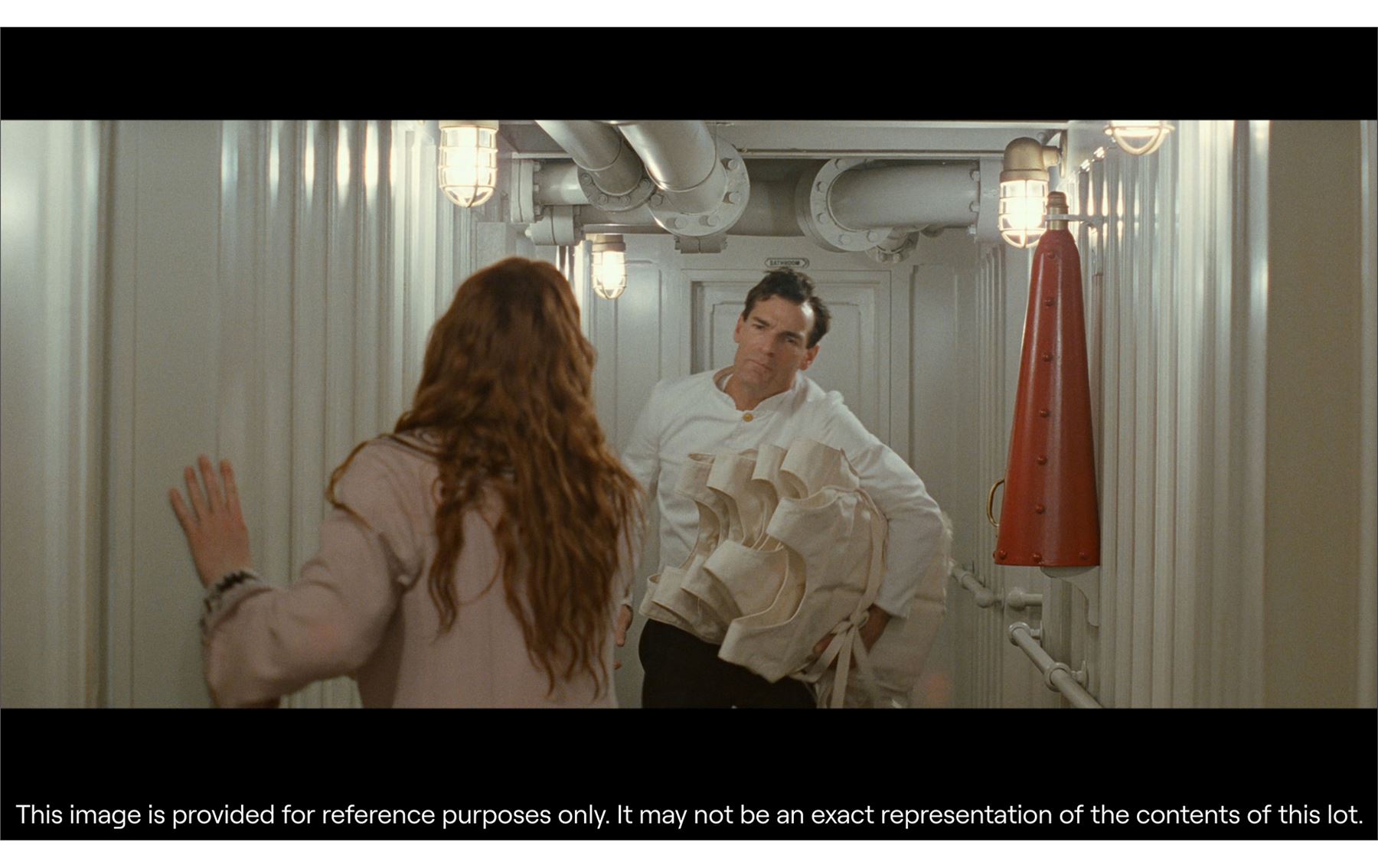 A life vest from James Cameron's romantic disaster film Titanic. Passengers made use of their life vests throughout the film's iconic sinking sequences as they struggled to evacuate the doomed vessel.