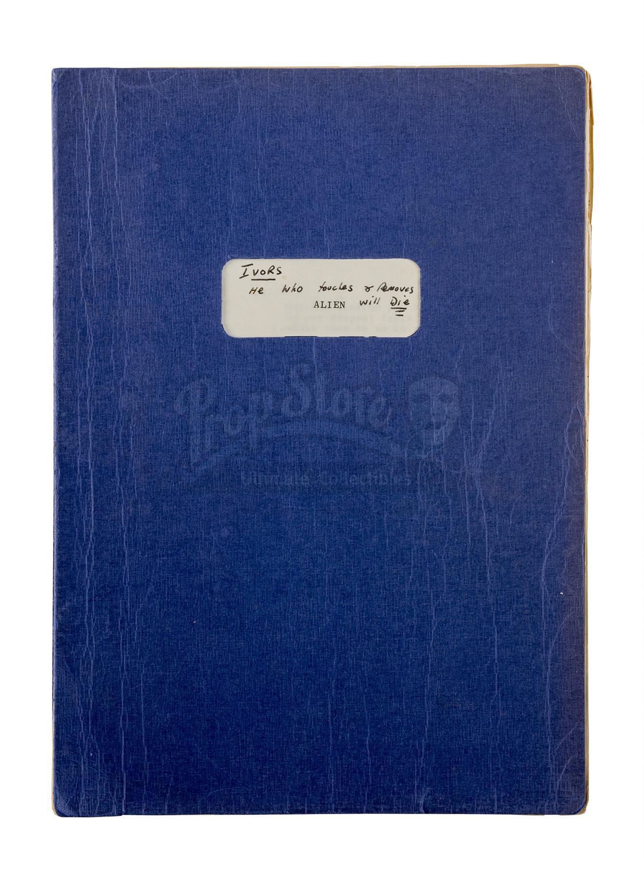 This 100-page script, dated "March '78", comes from associate producer Ivor Powell. It is labeled "Ivors - He Who Touches & Removes will Die" in ink, and is secured with metal brads. It features handwritten notes throughout regarding locations, prop requirements, and costs. This script is in good overall condition with some creasing to the paper and minor discoloration to the binding. Dimensions: 12" x 8 1/2" x 1" (30.5 cm x 21.75 cm x 2.75 cm)