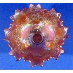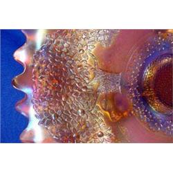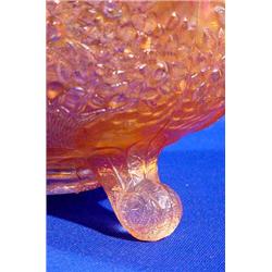 Fenton orange tree three footed bowl; marigold, Carnival glass; 5.5"t x 10.25"dia. Est. $60 - $90.