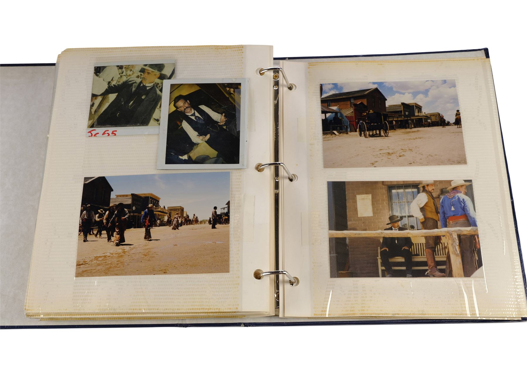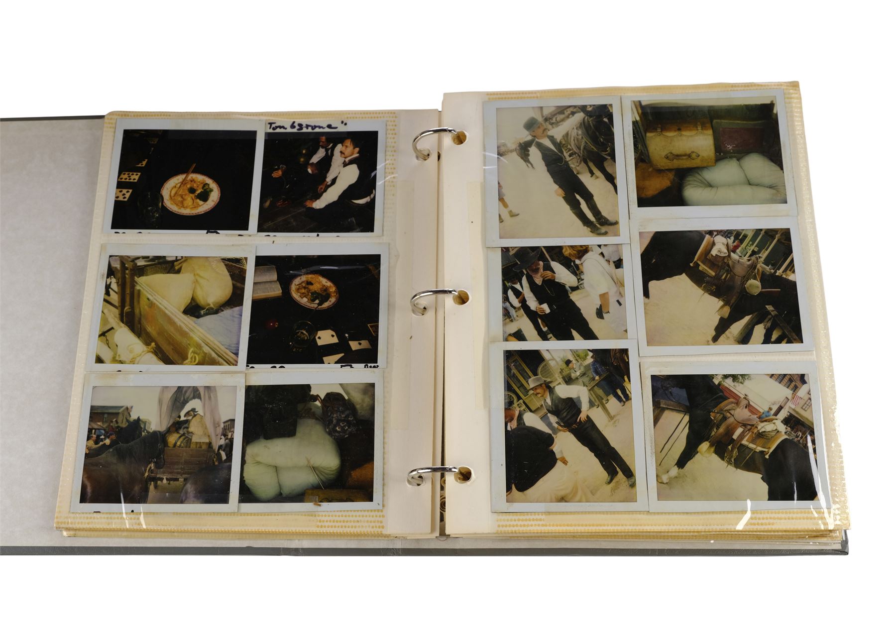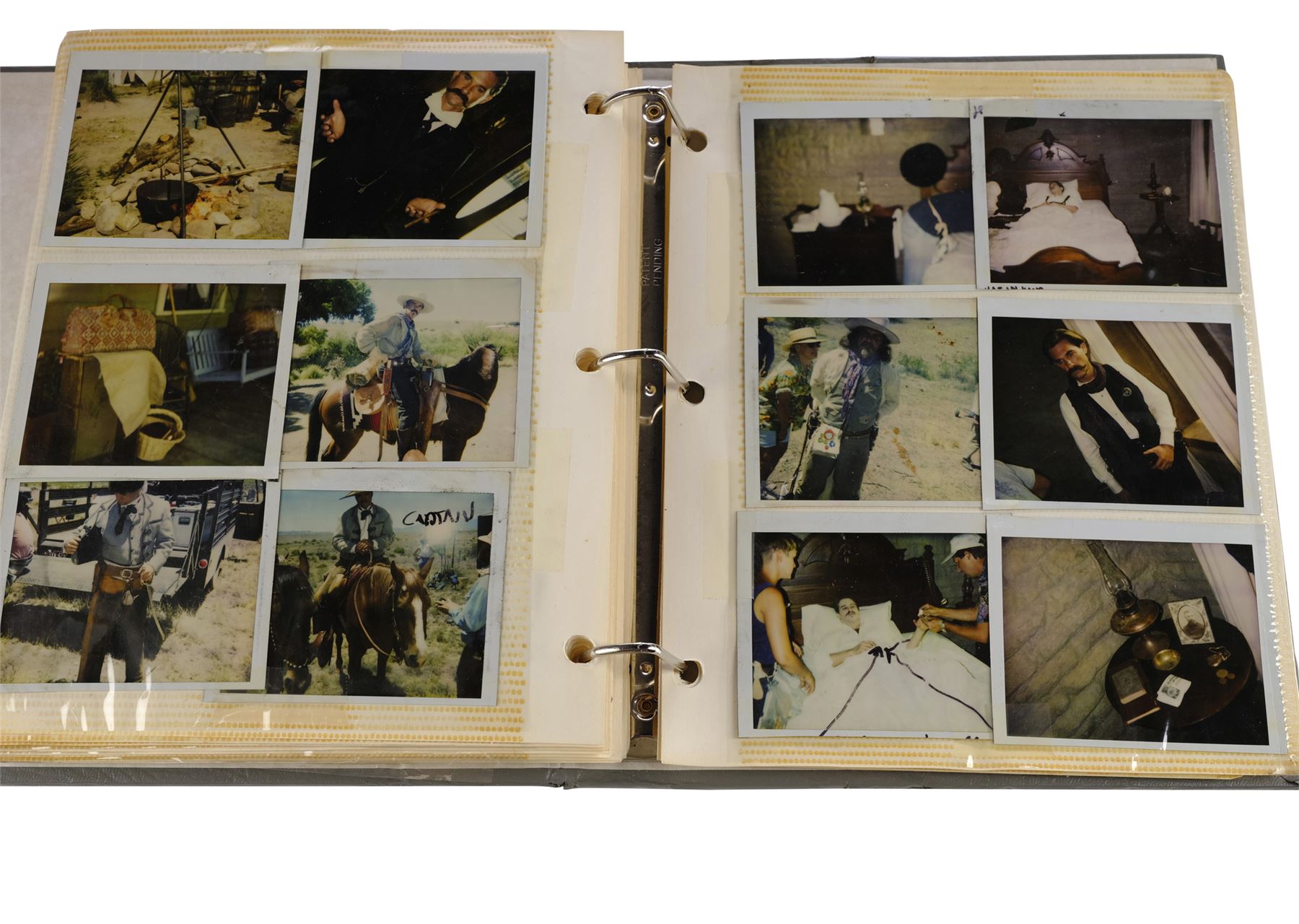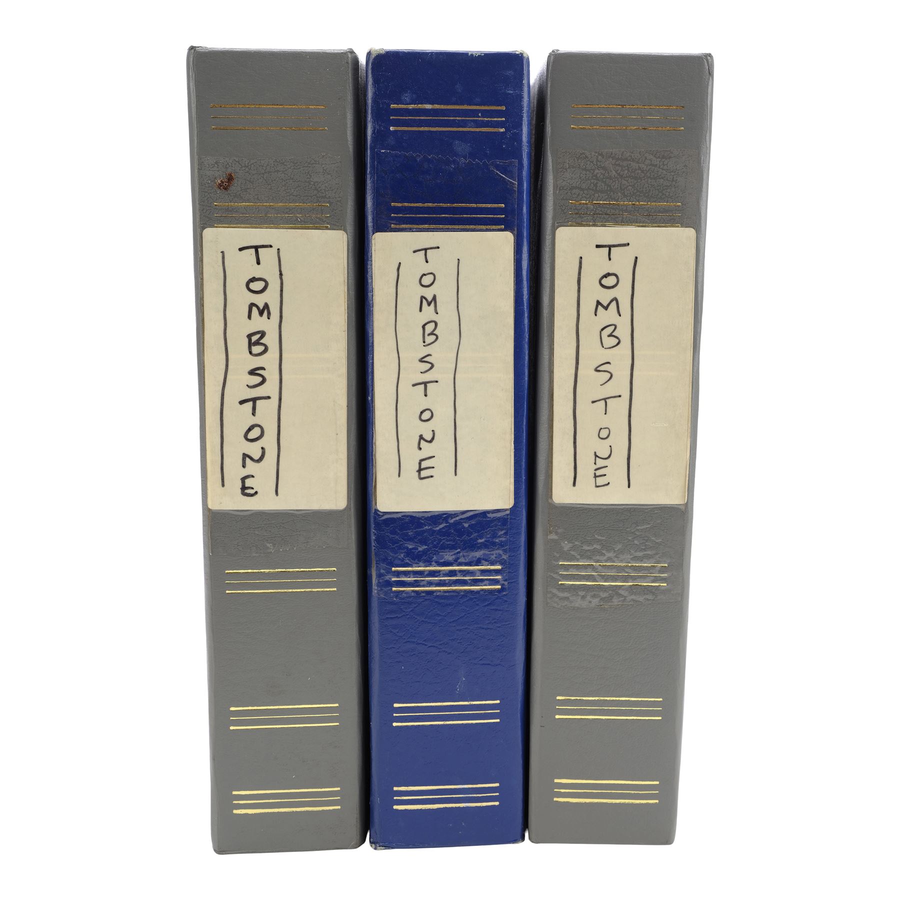 This lot consists of three continuity photo binders. Two binders are grey with a gold-colour border, one featuring 228 colour Polaroids and one featuring 261 Polaroids. The third binder is blue with a gold-colour border featuring 230 photos. Each binder is labelled "TOMBSTONE" along the spine. This lot exhibits grime and discolouration from age. Dimensions: (each) 26.75 cm x 30 cm x 5 cm (10.5" x 11.75" x 2")