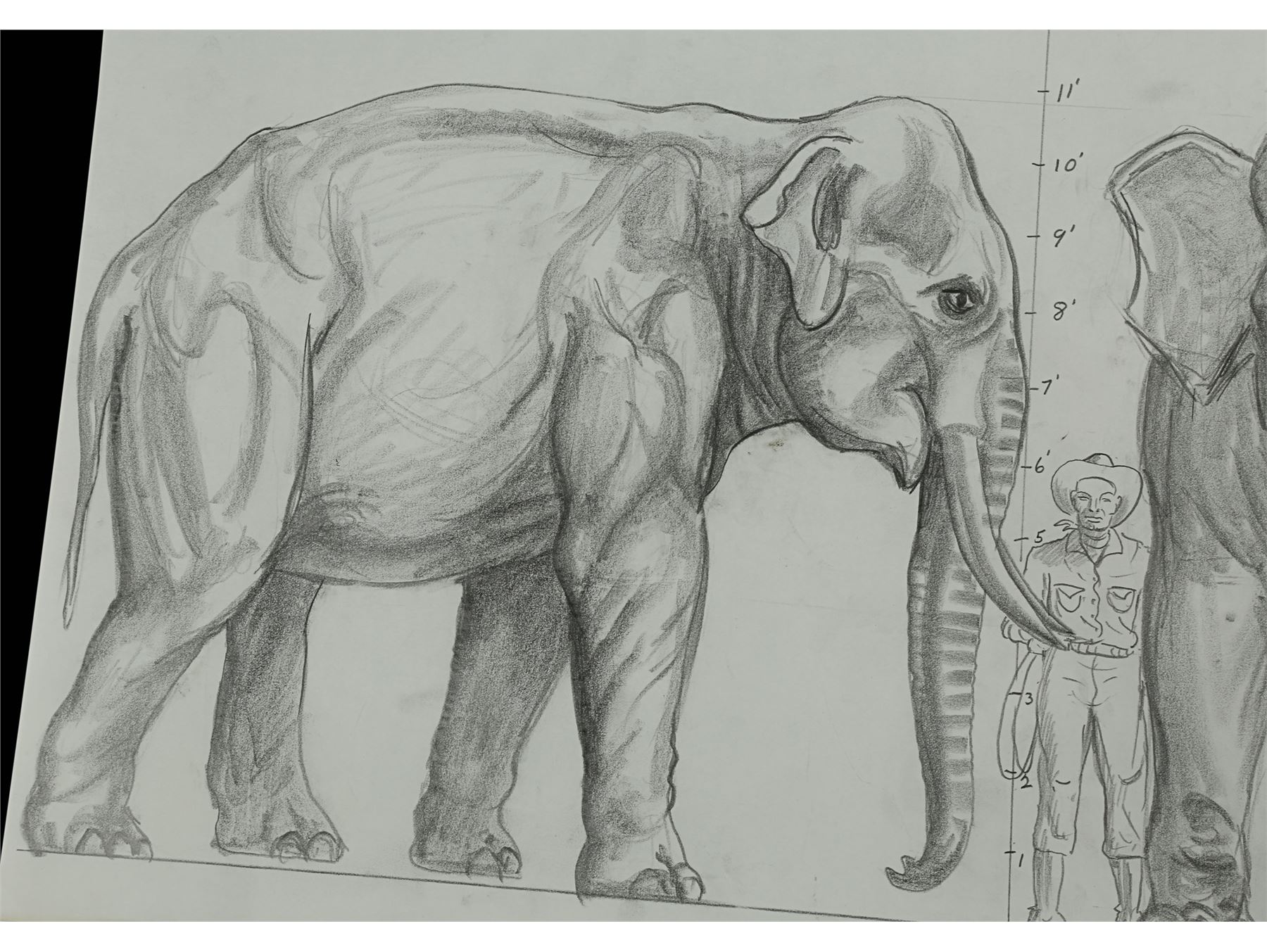 THE VALLEY OF GWANGI (1969) - Hand-drawn Ray Harryhausen "Pinky the Elephant" Scale Comparison
