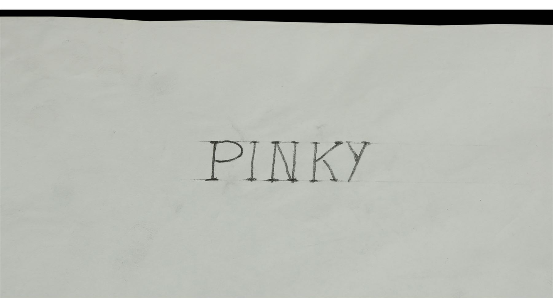 Harryhausen often made detailed size comparisons, as they were vital for his own reference, and to help the actors visualise his creations while shooting. The detailed artwork is rendered in pencil on paper, and the sheet is labelled "Pinky". The lot exhibits smudging and minor marks in the top left corner. Dimensions: 40.5 cm x 50.5 cm (16" x 19 3/4")