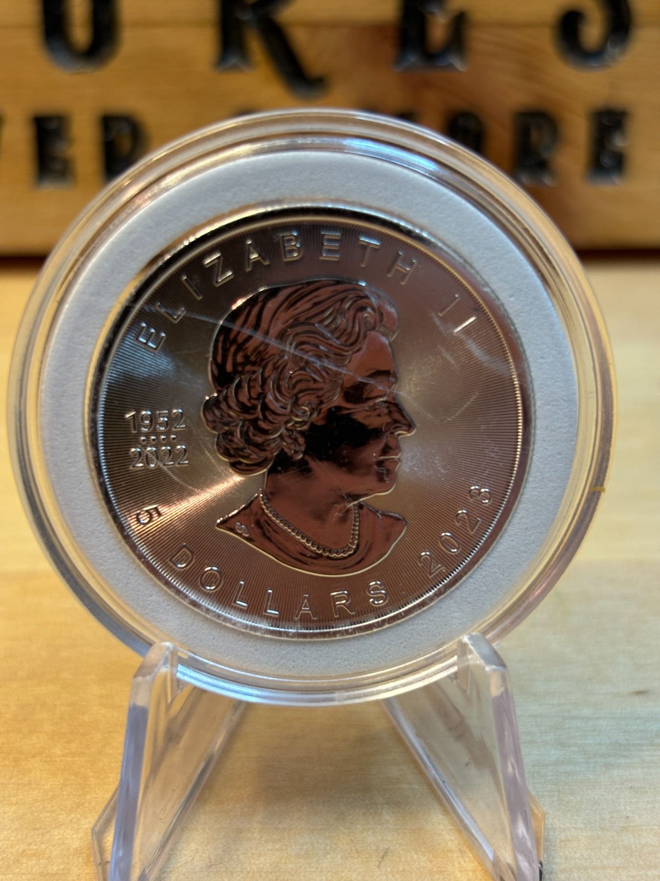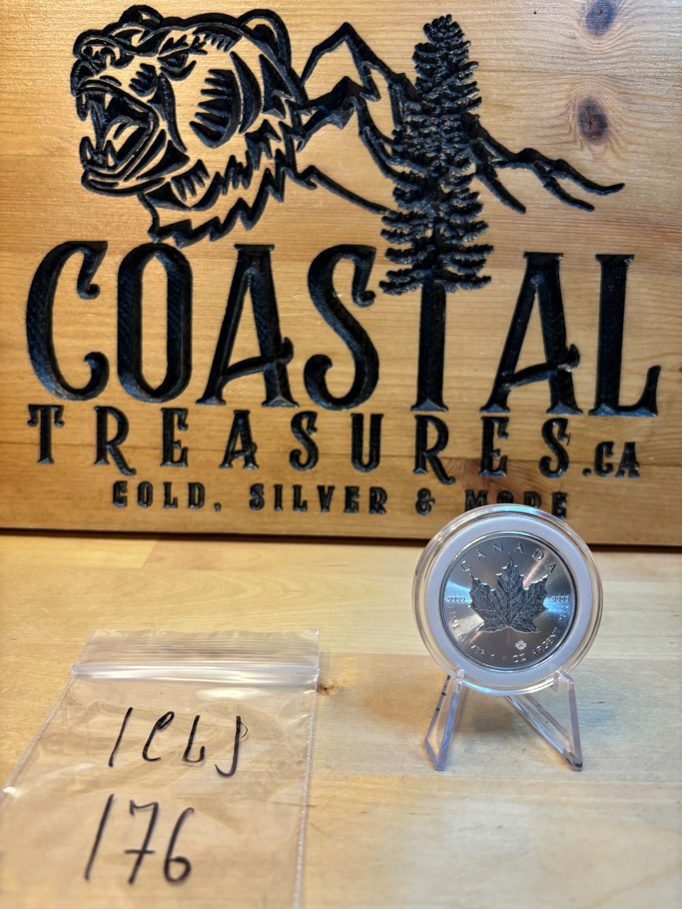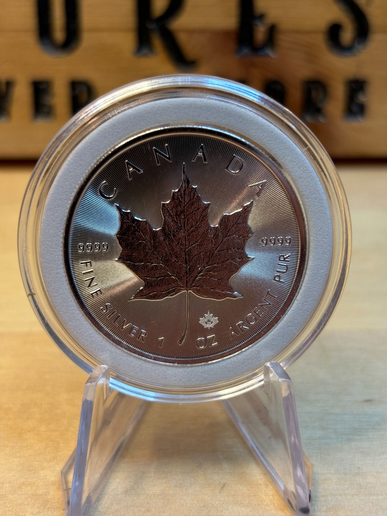 The 1 oz Canadian Maple 2023 Silver Coin is a highly regarded bullion coin issued by the Royal Canadian Mint, containing 1 ounce of .9999 fine silver. Known for its iconic maple leaf design, this coin symbolizes Canada’s rich natural heritage. The 2023 edition continues the tradition of high-quality minting, featuring intricate detailing and a portrait of Queen Elizabeth II on the reverse. Popular among both investors and collectors, it carries value based on the current silver market price, with additional premiums due to its purity, design, and the Mint’s esteemed reputation.