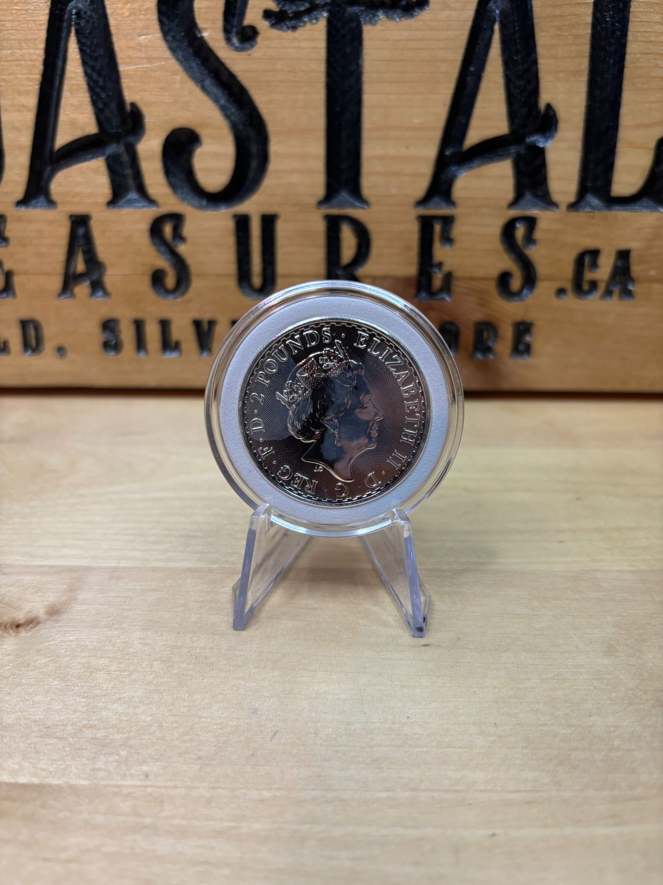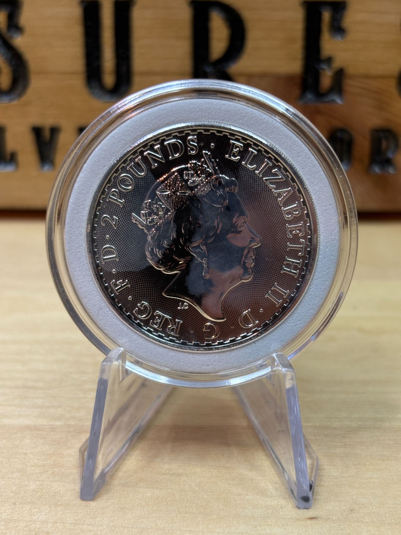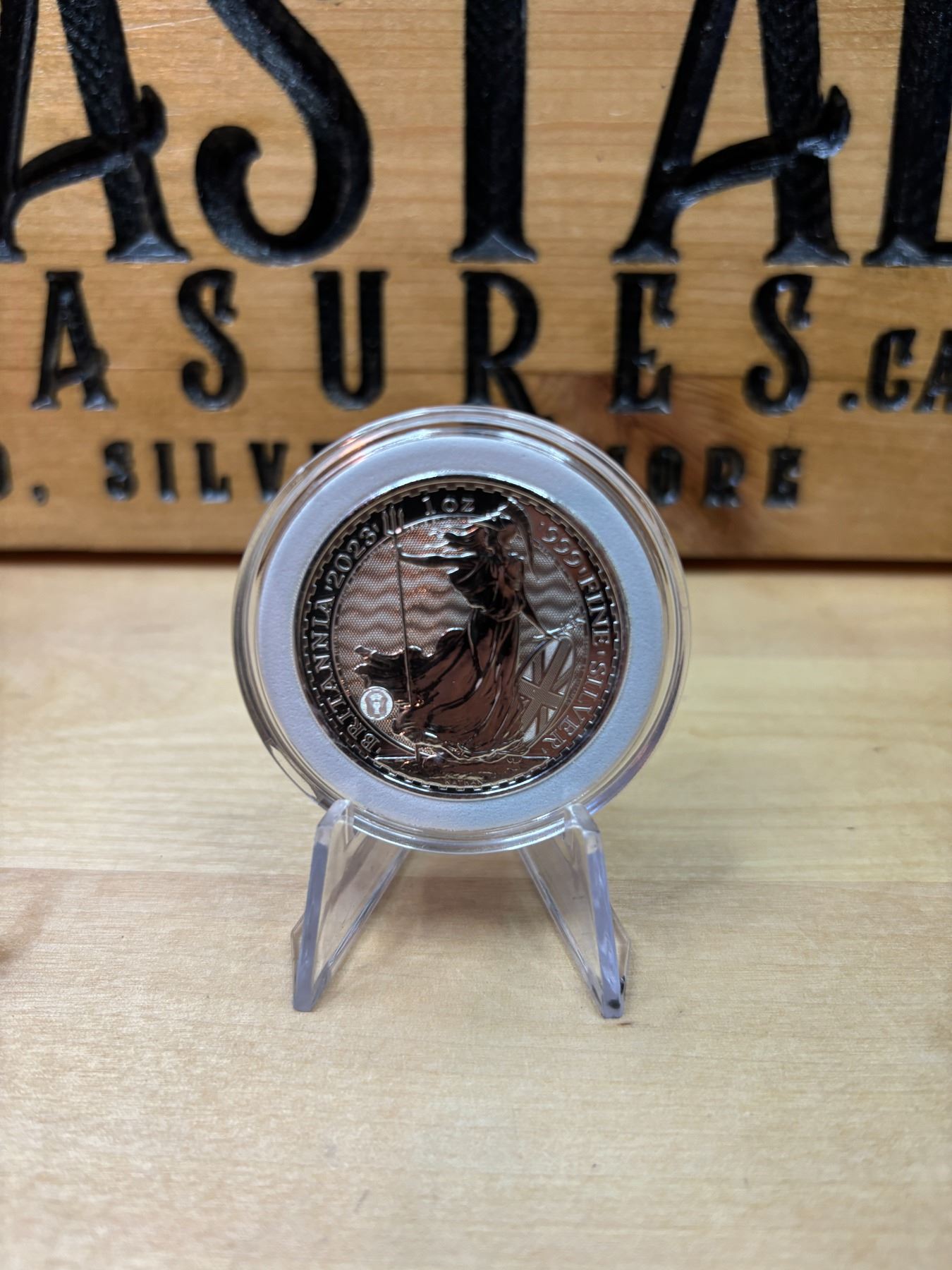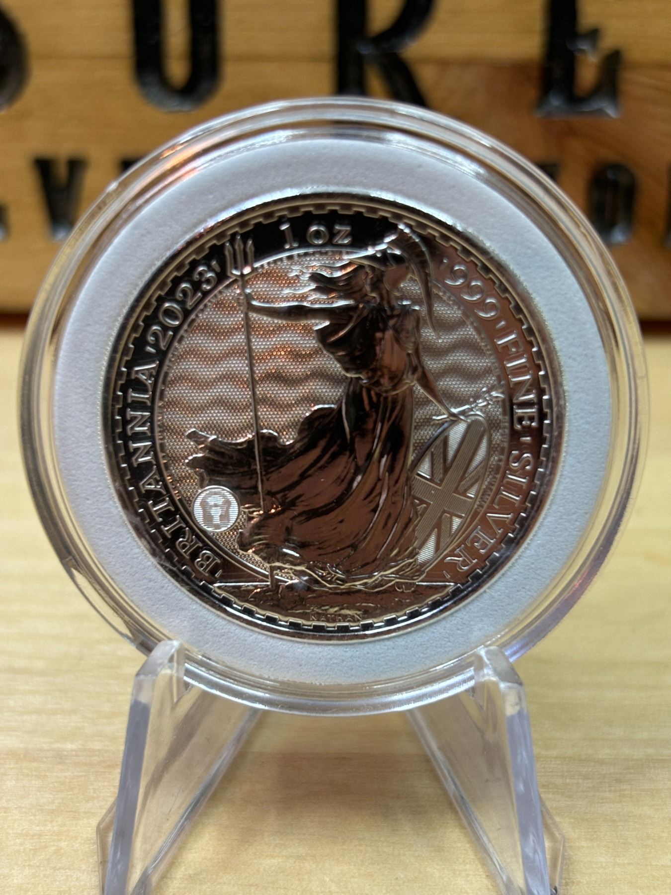 The 1 oz Britannia 2023 Silver Coin is part of the popular Britannia series, produced by the Royal Mint. It contains 1 ounce of .999 fine silver and features the iconic image of Britannia, symbolizing strength and resilience. The 2023 edition features an updated design with enhanced security features, such as a new background wave pattern and a holographic foil that changes in the light, making it more difficult to counterfeit. The coin is widely sought after by collectors and investors alike.