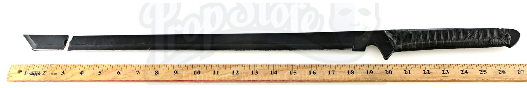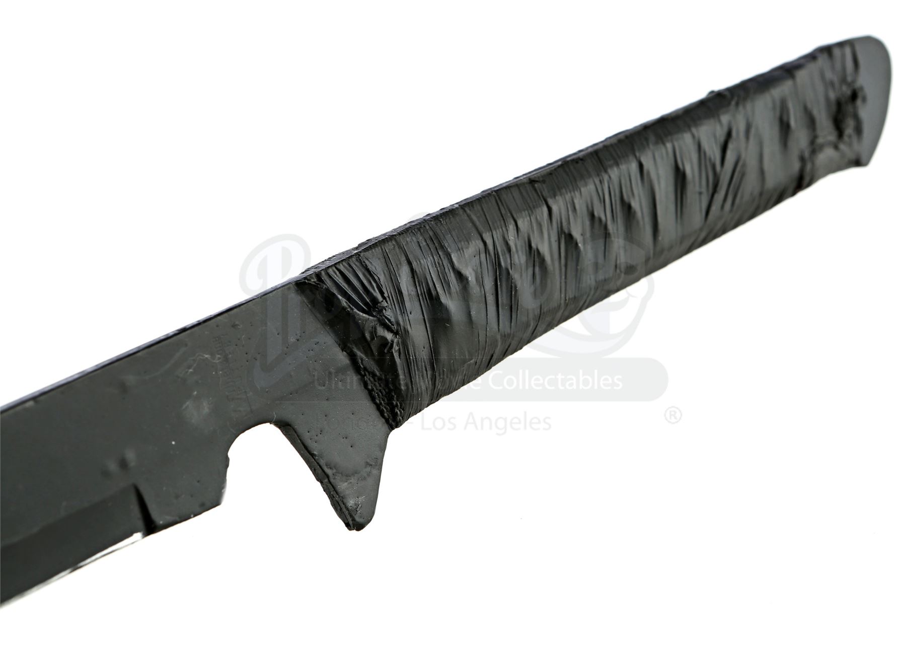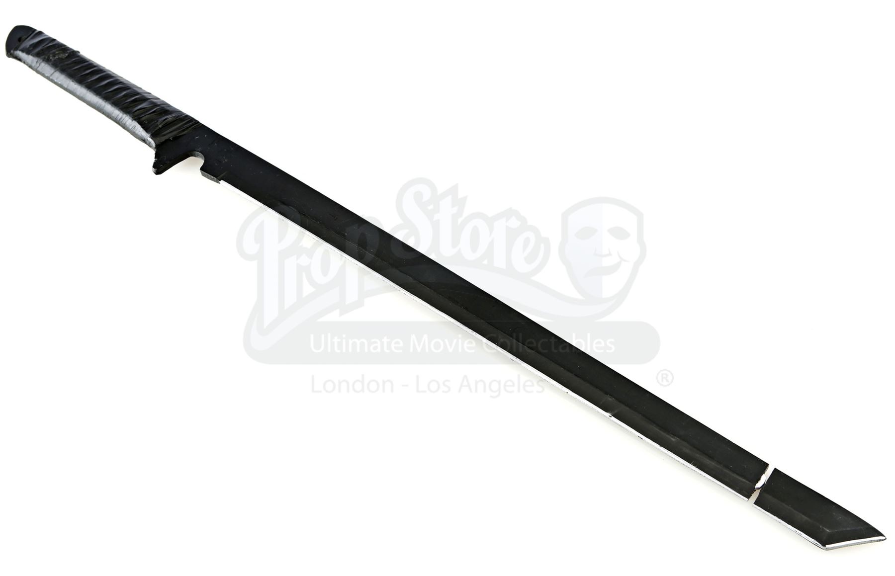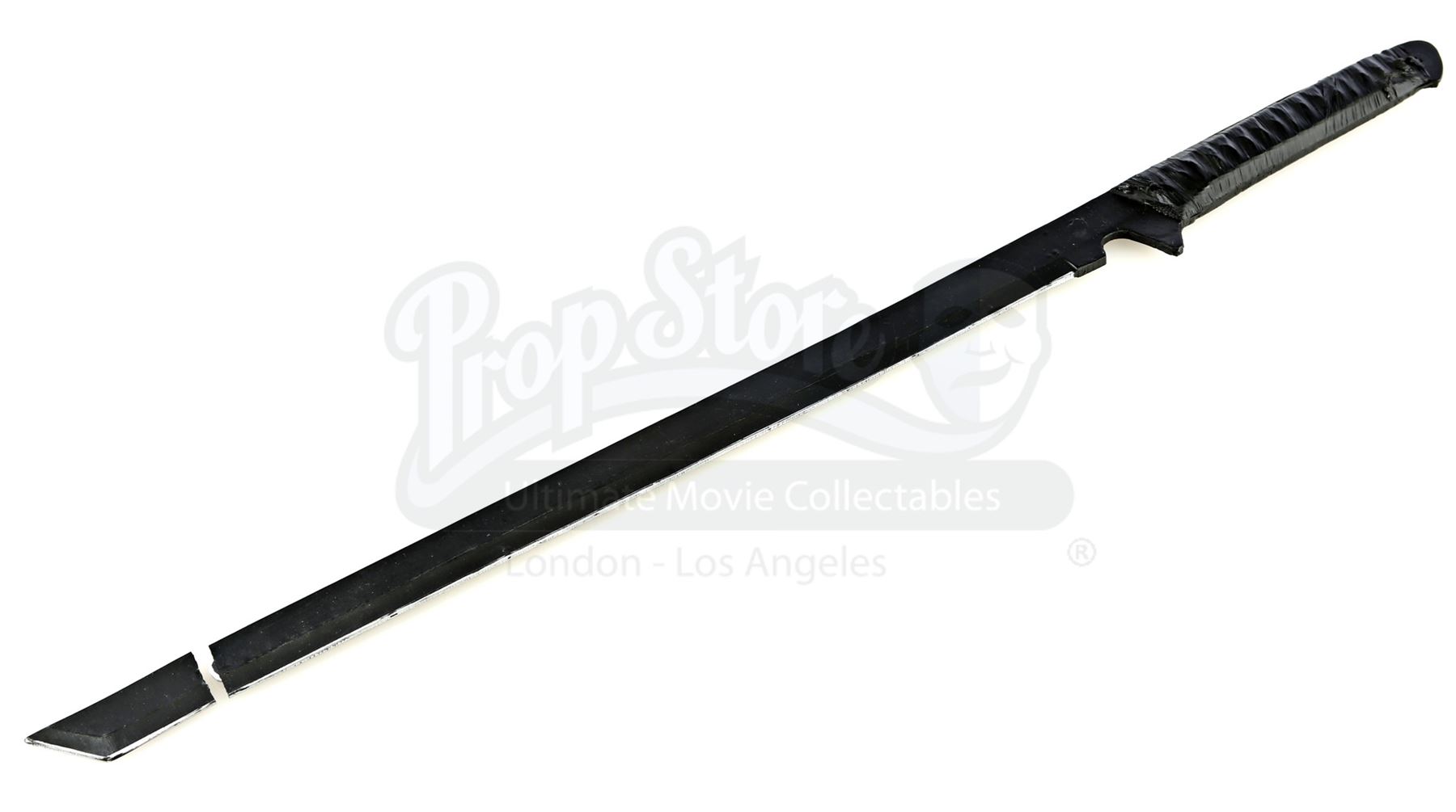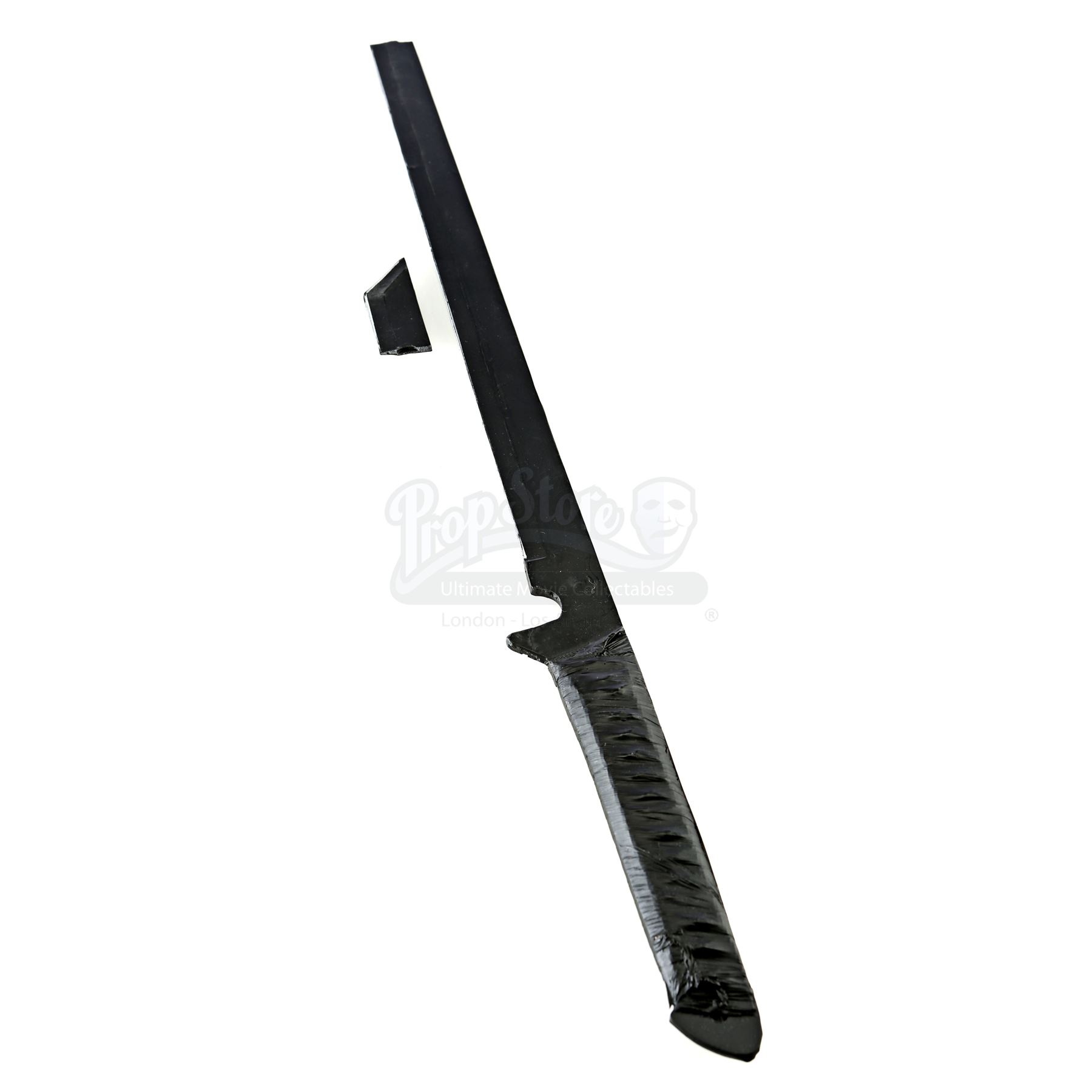 Stick’s urethane blade from the episode ‘Guilty as Sin’ (208) of Marvel's Daredevil. In the episode, Stick uses his blade to protect Matt Murdock and Elektra Natchios from The Hand’s agents. This weapon has a woven polyester handle wrapped with tape. It is in fair overall condition, with its tip snapped off during production and presented separately.