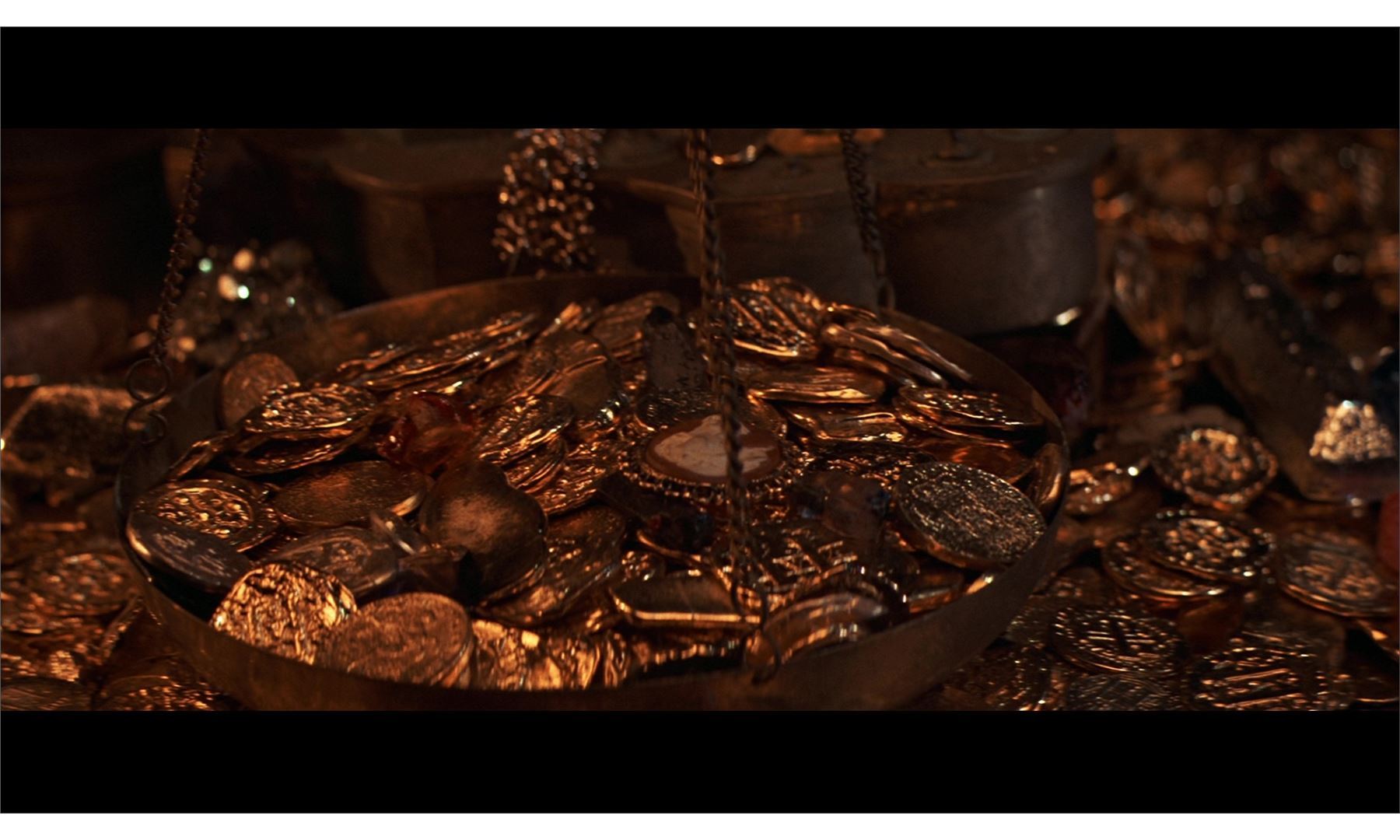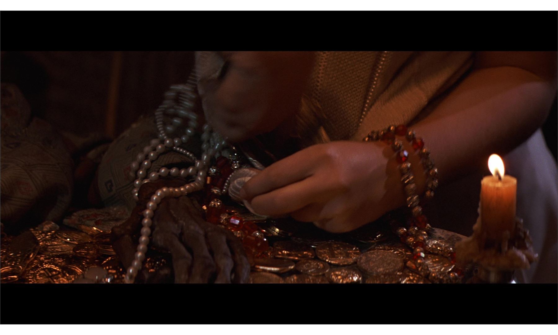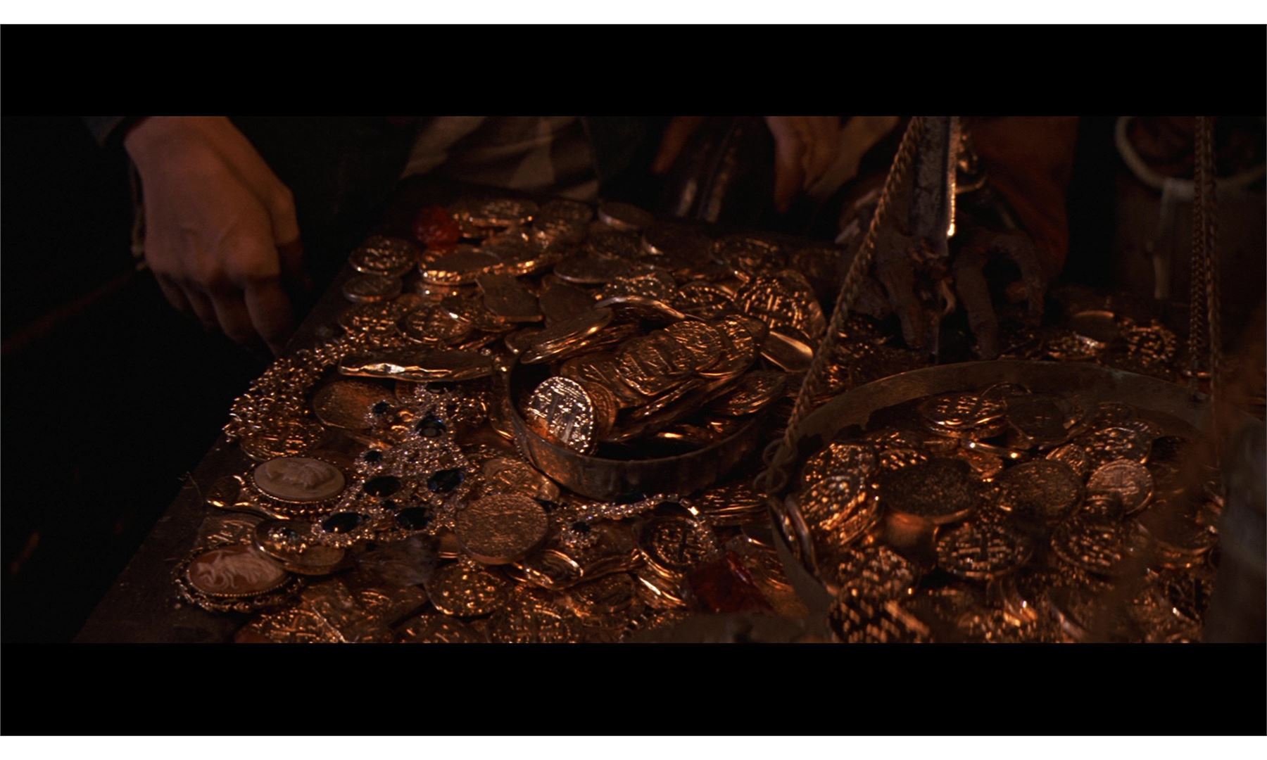 THE GOONIES (1985) - Assorted One-Eyed Willy's Treasure - One-Eyed Willy's assorted treasure from Richard Donner's adventure film The Goonies. One-Eyed Willy's long-lost treasure included many coins, pieces of gold, gems, and baubles.