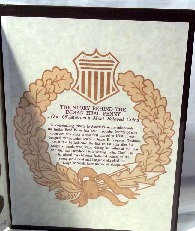 Display Folder with "The Last 25 Years Indian Head Pennies Collection" written on the cover and the story behind the Indian Head Penny in the back inside cover!!!