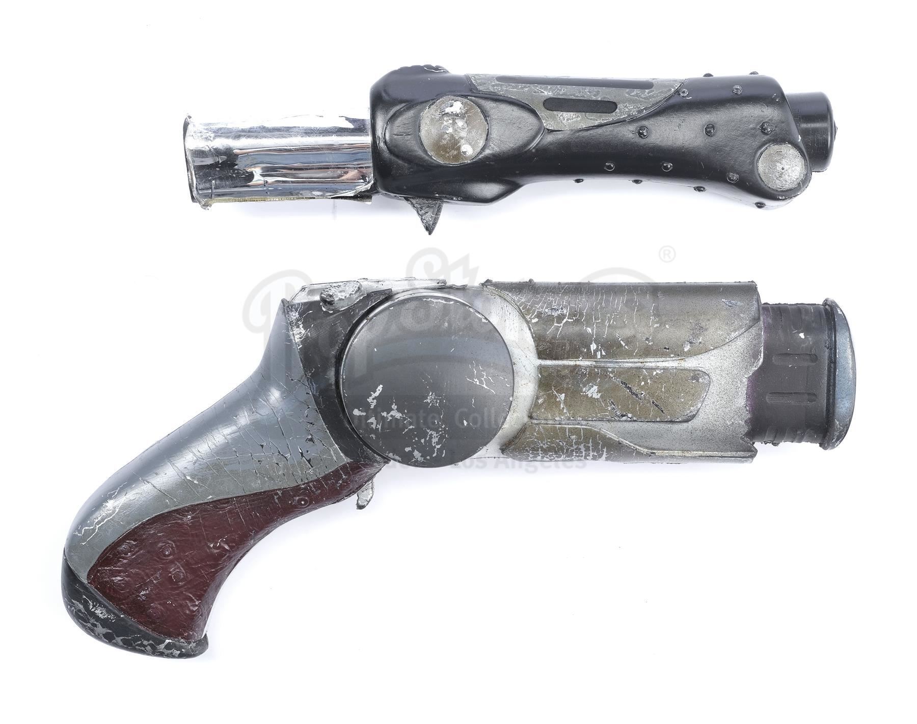This lot will be auctioned on Tuesday, June 29th. The auction will begin at 9:00am PDT and lots are sold sequentially via live auctioneer; tune in to the live streaming broadcast on auction day to follow the pace. Note other lots in the auction may close on June 30th or July 1st. A Precrime officer's (Richard Coca) jumpsuit, holster, and accessories from Steven Spielberg's sci-fi action thriller Minority Report. In 2054 Washington D.C., uniformed law enforcement officers apprehended criminals before they committed crimes. This costume consists of a gray cotton blend Muto Little zip-up jumpsuit marked "Richard Coca" with a nametag reading "RAMOS" and a Precrime insignia on the left shoulder; a gray rubber wrist bracer; a black nylon belt with pouches and plastic holster; and a gray urethane pistol. It exhibits signs of use and wear throughout including the separation of the front and back halves of the pistol, but remains in excellent overall condition. Contains electronic components; see notice in the Buyer's Guide. Estimate: $1,000 - 1,500