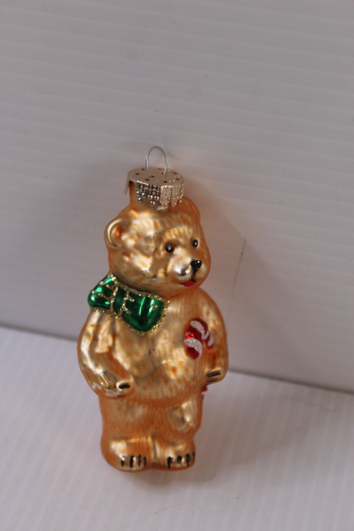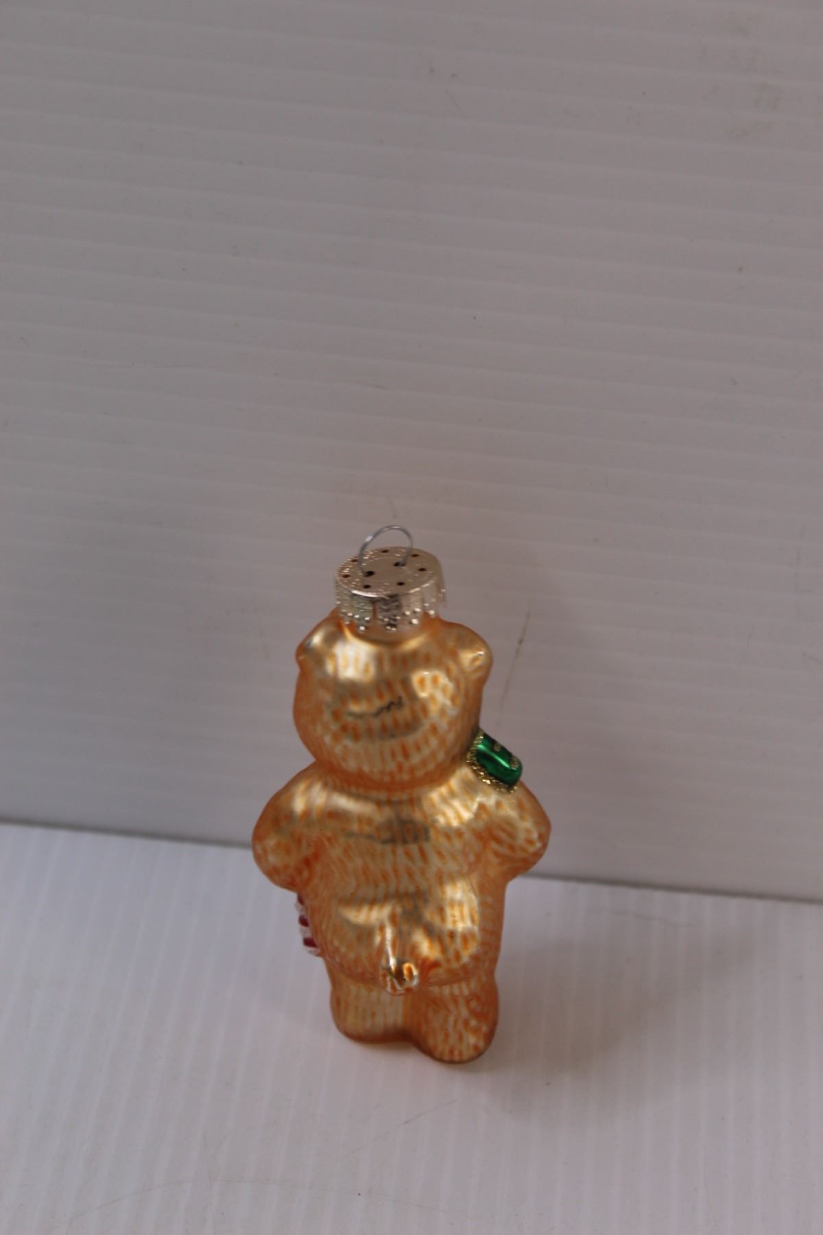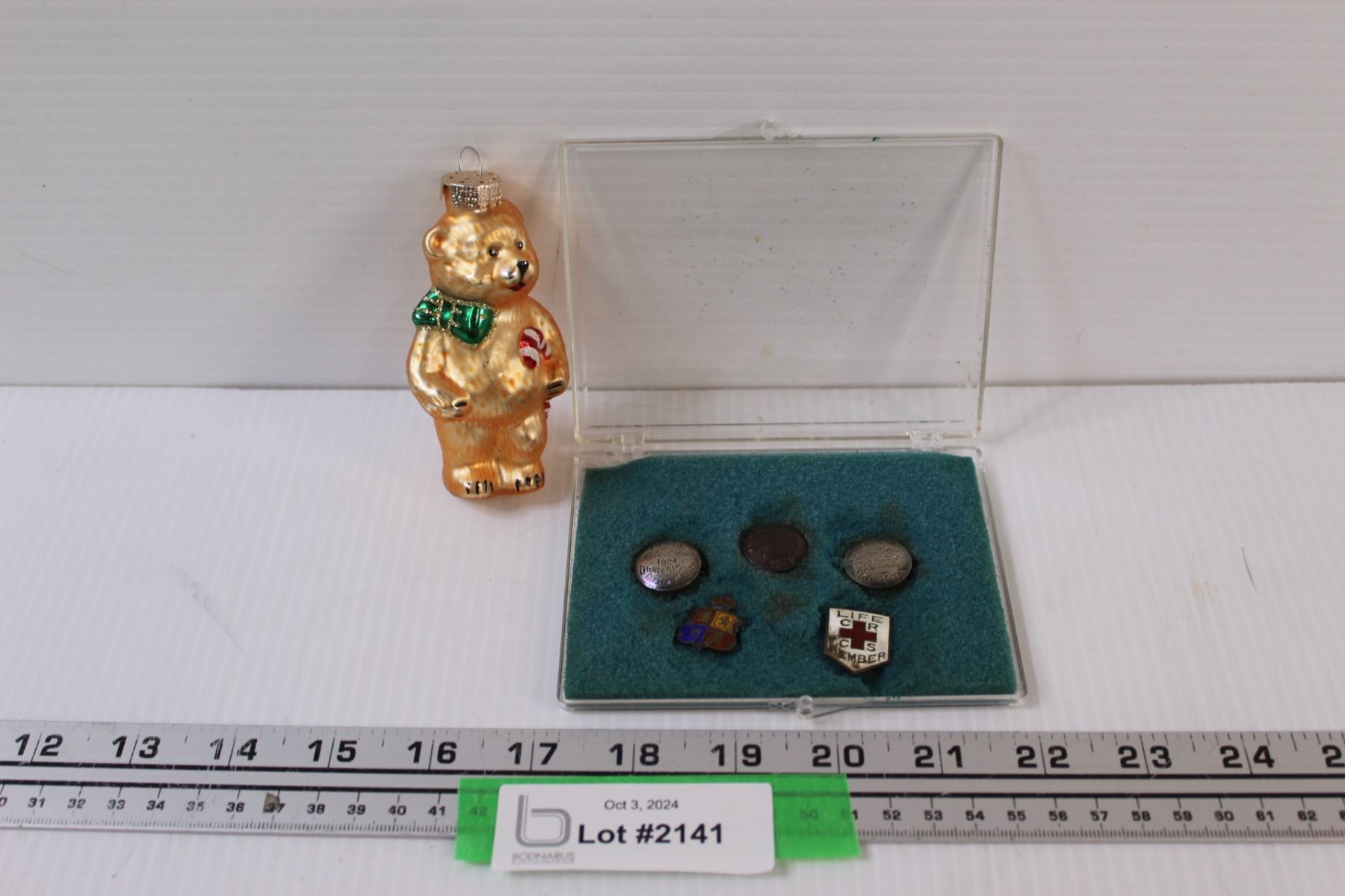 Lot: 1920's School Buttons, Red Cross Button in Case & Teddy Bear Glass Christmas Tree Ornament