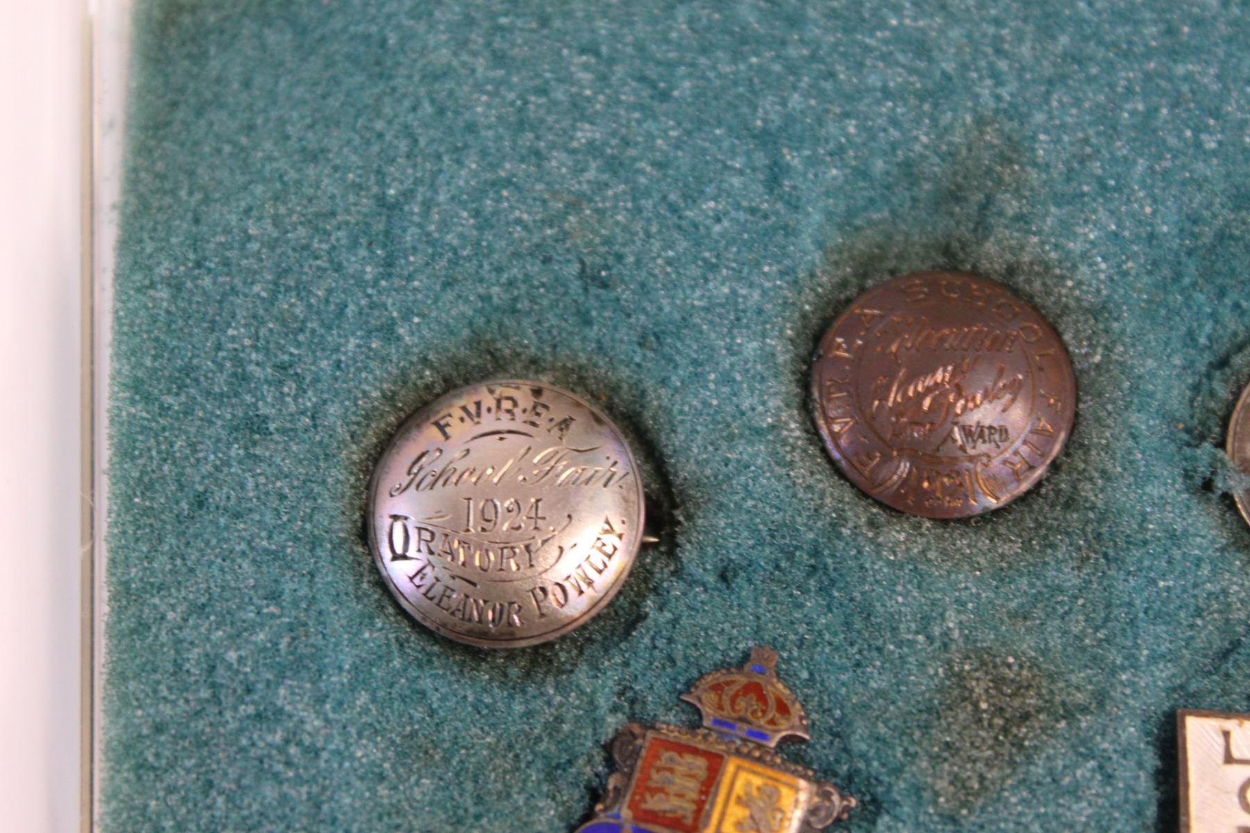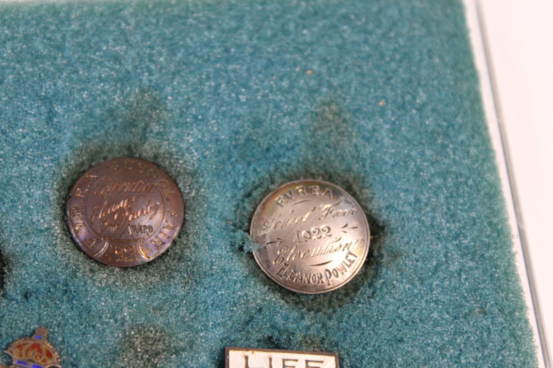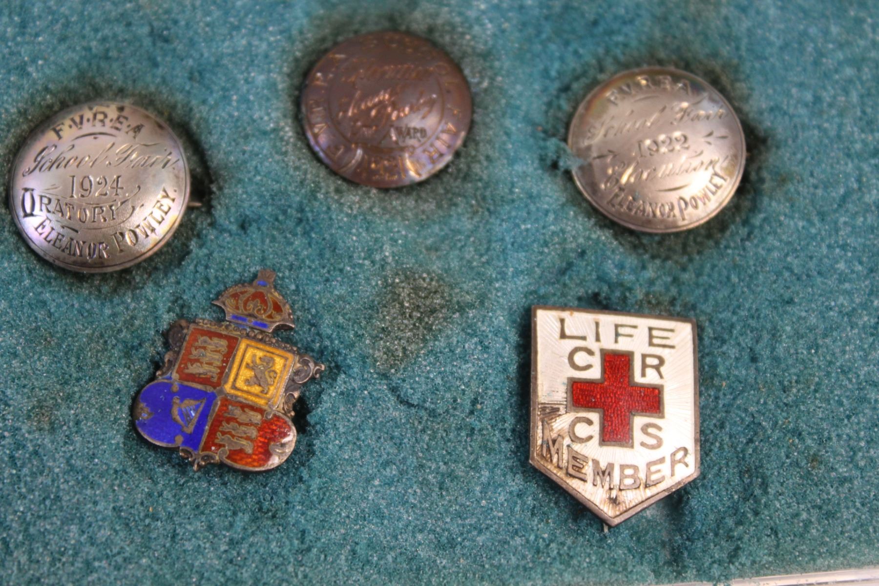 Lot: 1920's School Buttons, Red Cross Button in Case & Teddy Bear Glass Christmas Tree Ornament