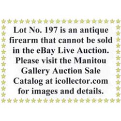 Lot #197 is an antique firearm than cannot be sold in the eBay Live Auction. Please see to Manitou Gallery Auction Sale Catalog at icollector.com fro images & details.