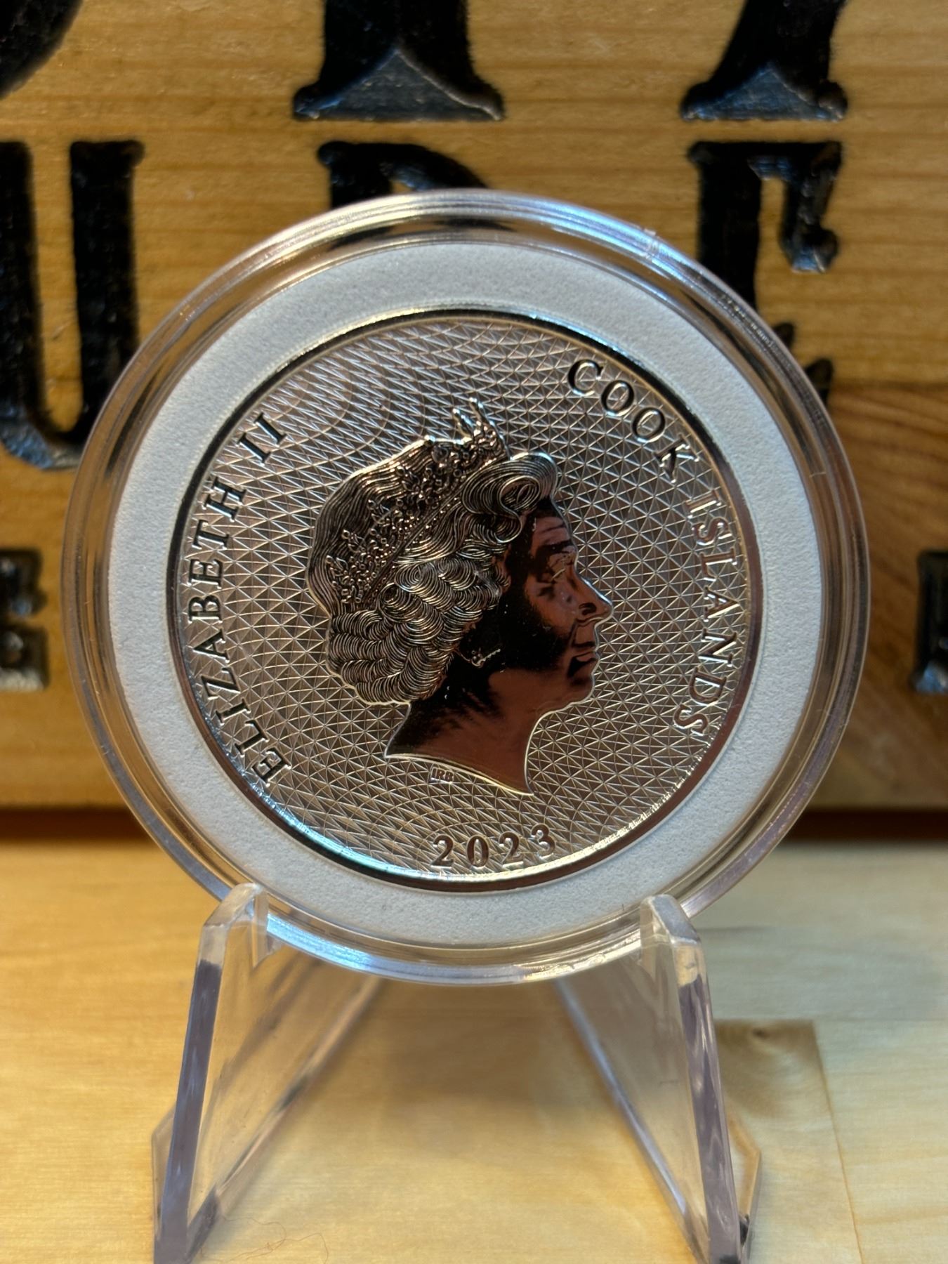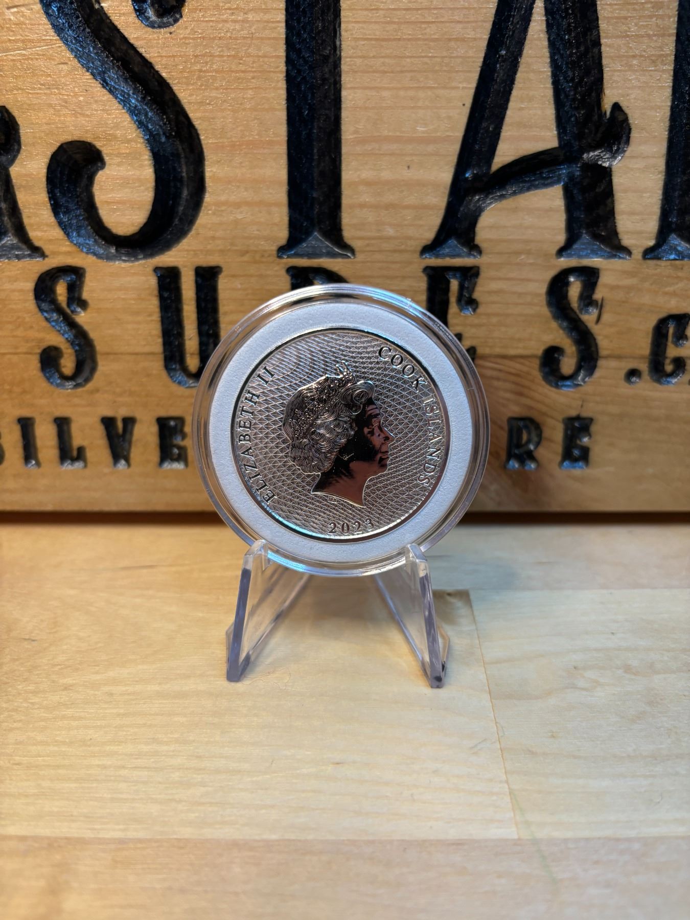The 1 oz Cook Islands Silver Coin is a .999 fine silver coin weighing 1 ounce (31.1 grams). It is legal tender in the Cook Islands, though its value is mainly based on its silver content and collectible designs. These coins feature various themes, such as wildlife, historical events, and cultural symbols, making them popular with both investors and collectors. With a face value typically of $1 Cook Islands, the coin is recognized worldwide for its quality and craftsmanship.