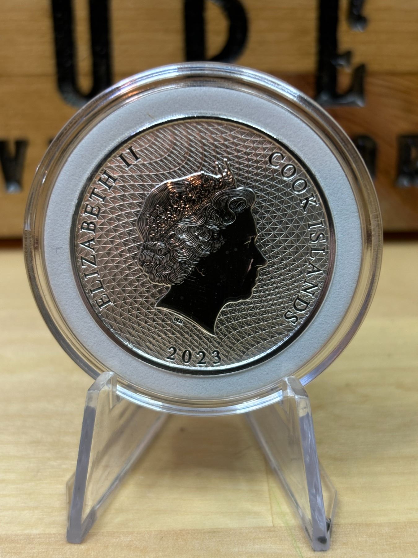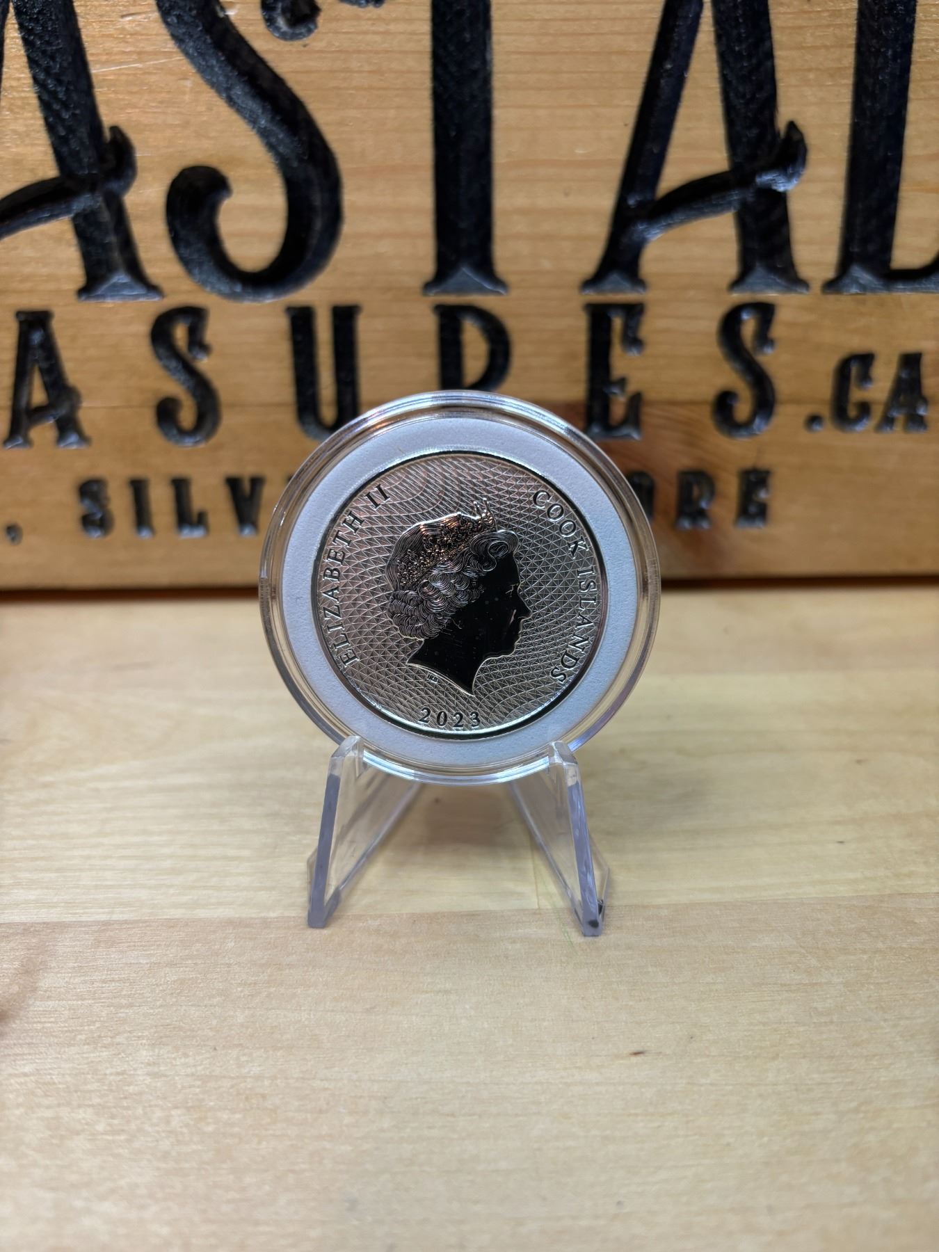 The 1 oz Cook Islands Silver Coin is a .999 fine silver coin weighing 1 ounce (31.1 grams). It is legal tender in the Cook Islands, though its value is mainly based on its silver content and collectible designs. These coins feature various themes, such as wildlife, historical events, and cultural symbols, making them popular with both investors and collectors. With a face value typically of $1 Cook Islands, the coin is recognized worldwide for its quality and craftsmanship.