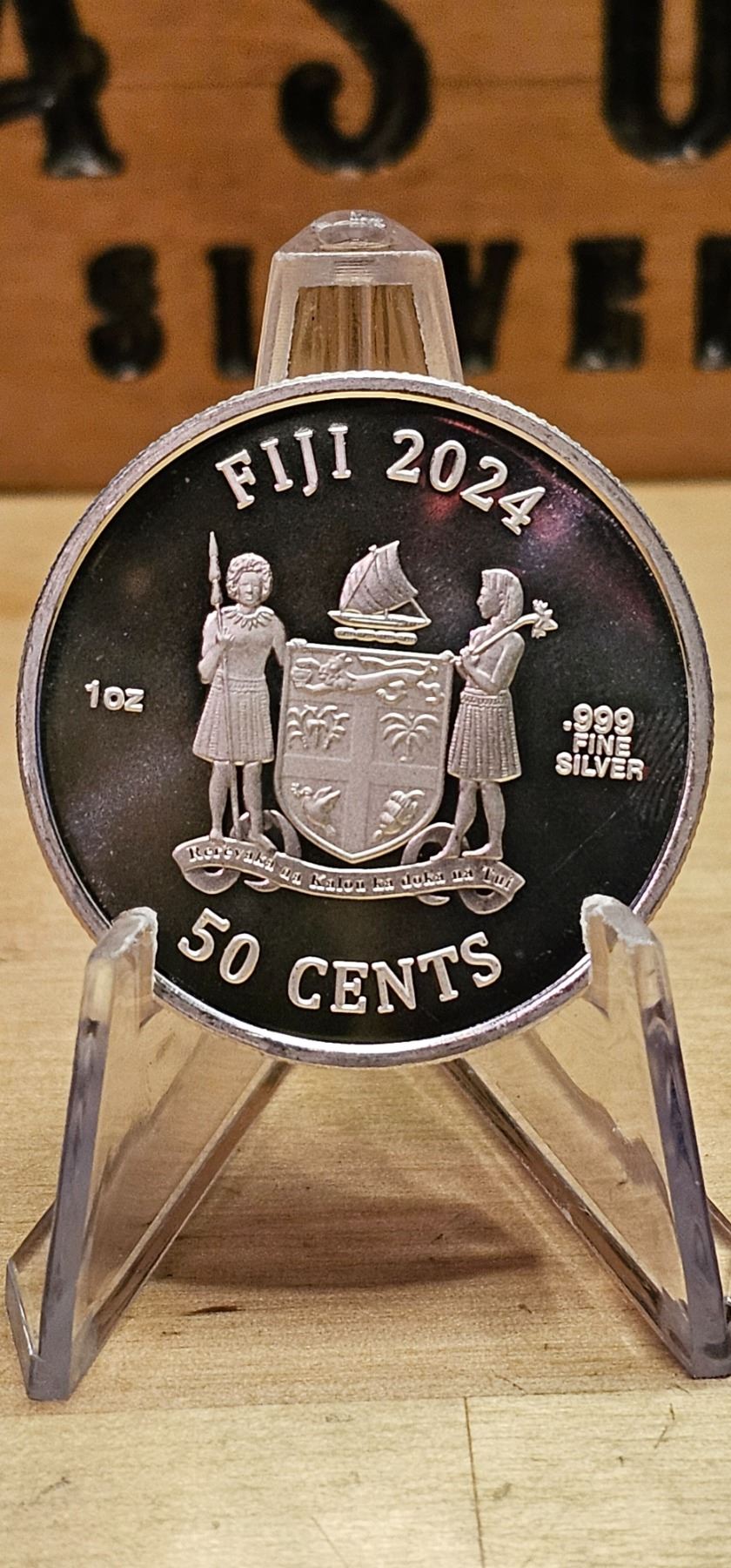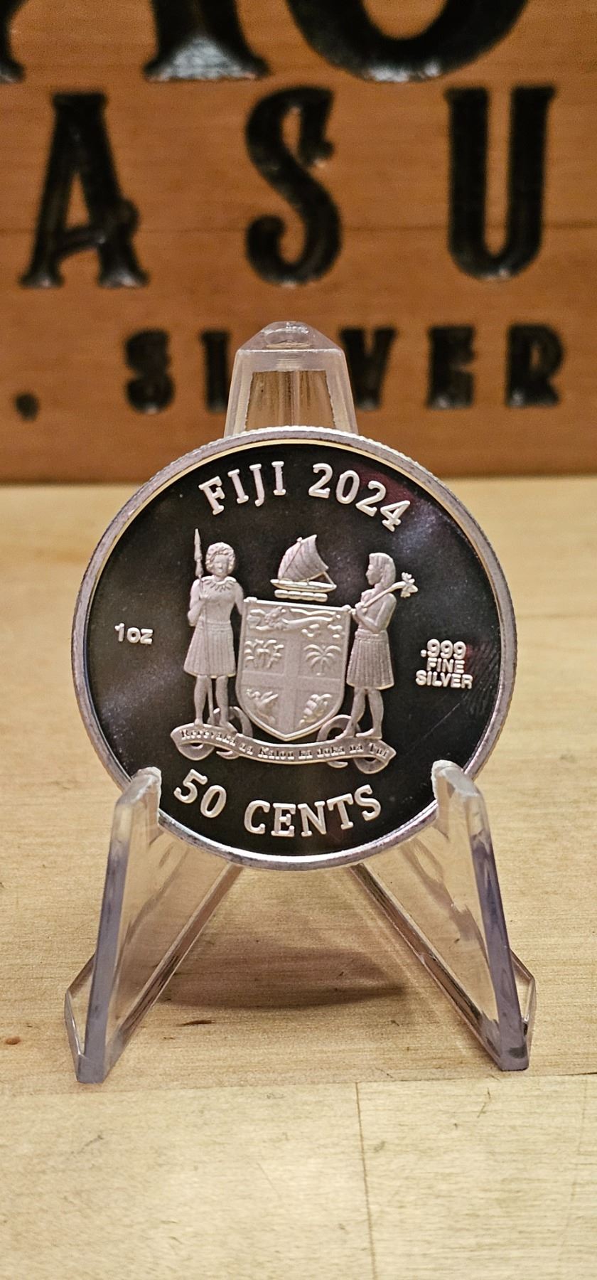 The 1 oz Fiji RoboCop 2024 is a stunning collectible silver coin celebrating the iconic sci-fi character. Struck in .999 fine silver, the obverse features Fiji’s coat of arms, while the reverse showcases a detailed design of RoboCop in his futuristic armor. Combining pop culture nostalgia with investment value, it’s a must-have for collectors and sci-fi fans alike.