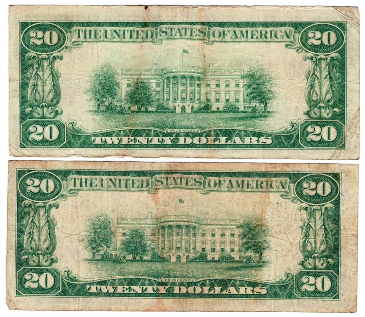One Lot (2) 1929 $20 Portland OR National Currency Notes