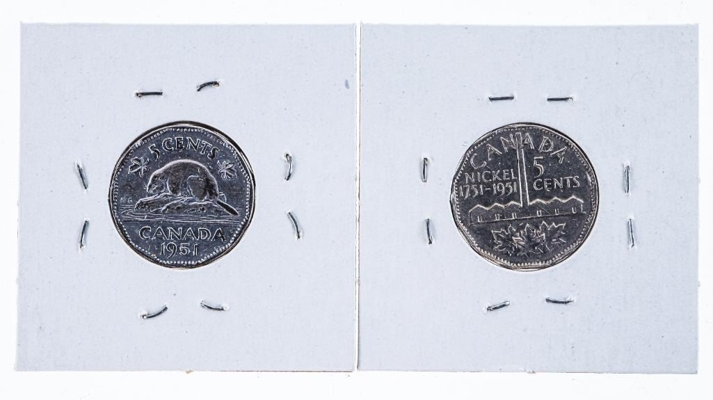 Lot 2 Canada 1951 Comm. & Plain Five cents