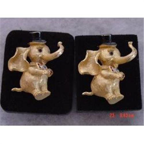 Look at these lovely 2 little guys! This lot consists of 2 signed MYLU elephant brooches. They are quite heavy and have black enameled hats! They have black rhinestone eyes, and red, white and blue rhinestones on the bow tie! Now looking at the red white and blue, my guess is these are a pair of republican elephants! Excellent condition. They measure 2 inches high