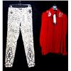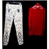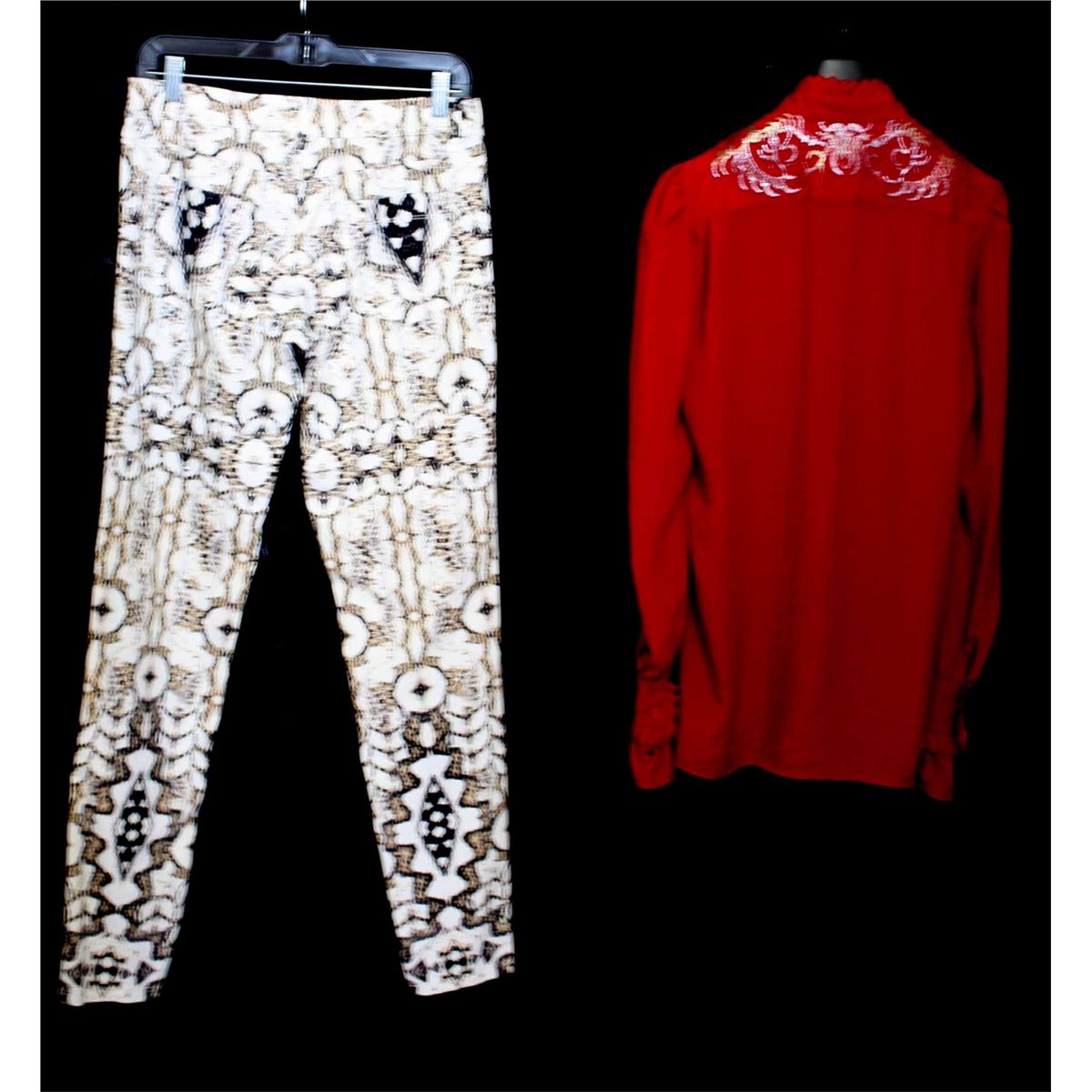 Lot [2] PIECES: [1] JustCavalli red blouse, size 6 and [1] JustCavalli animal print jeans, size 6