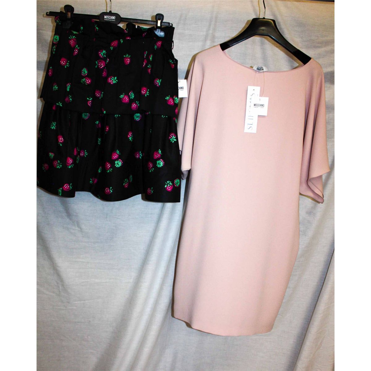 Lot [2] PIECES: [1] Moschino strawberry print skirt, size 6 and [1] Moschino cap sleeve dress, size 8