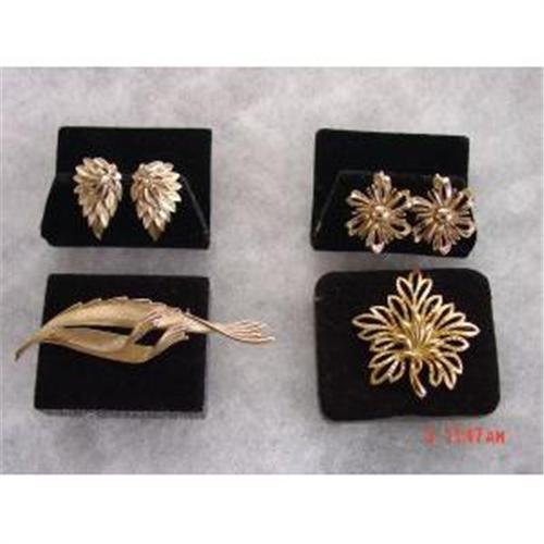 <tr><td>Title:Lot 2 Trifari 3 piece Sets Brooch and Earrings</td></tr>