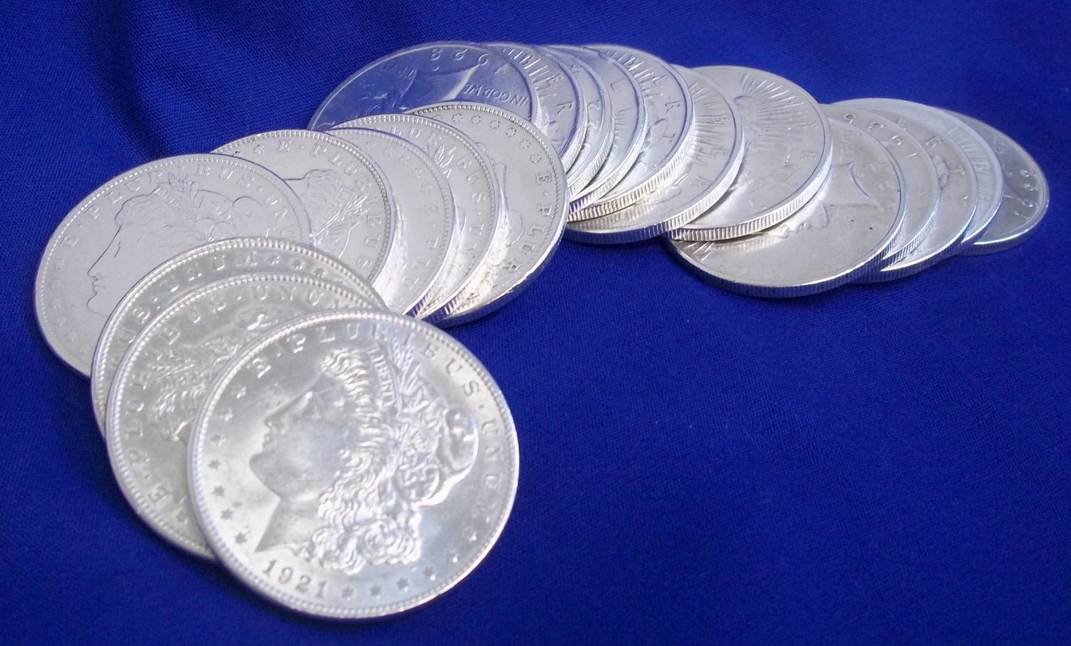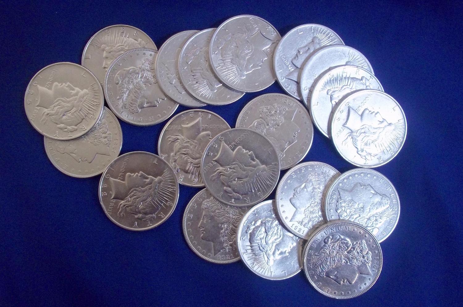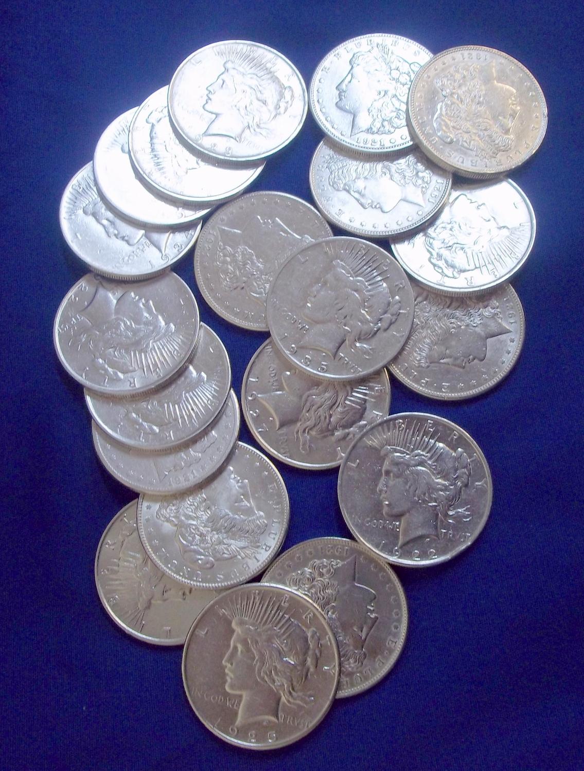 Lot-14 Peace Dollars, 6 Morgans, very clean & bright, COLLECTOR GRADE, Brilliant Finishes!! Beautiful Collection of Silver Dollars, Perfect For Any Collections...Have them graded and win big!!