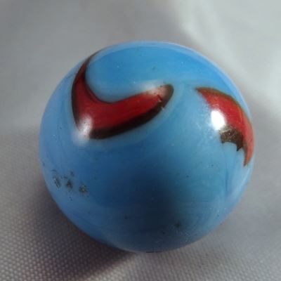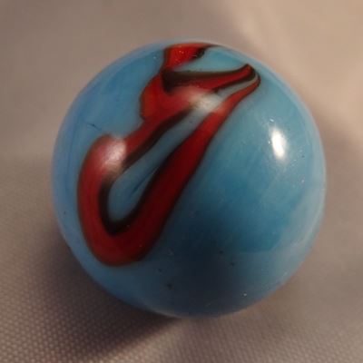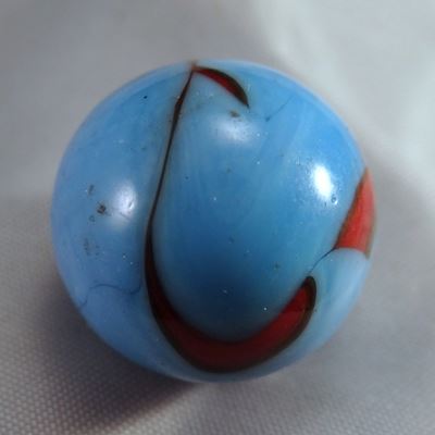 Red swirls in light blue. Cambridge OH, circa 1927-1929. 11/16". Mint (9.9).